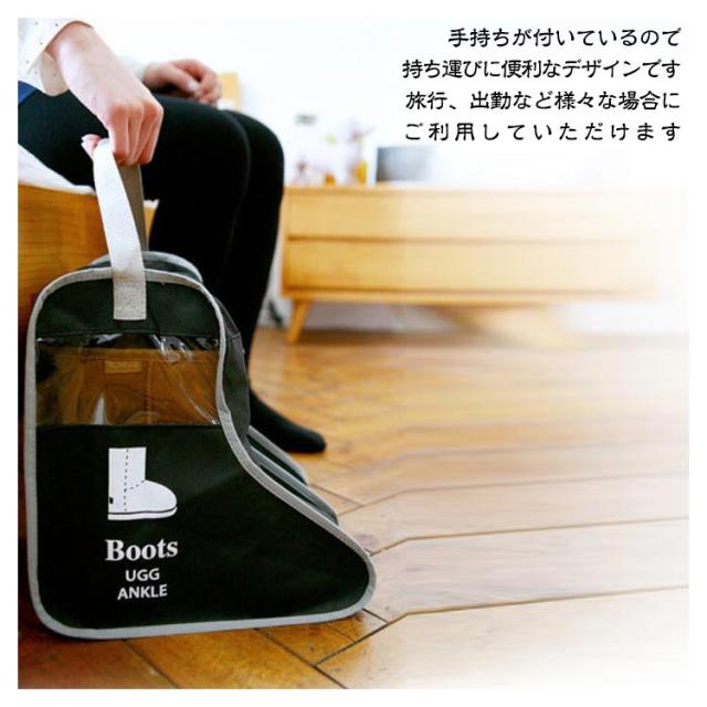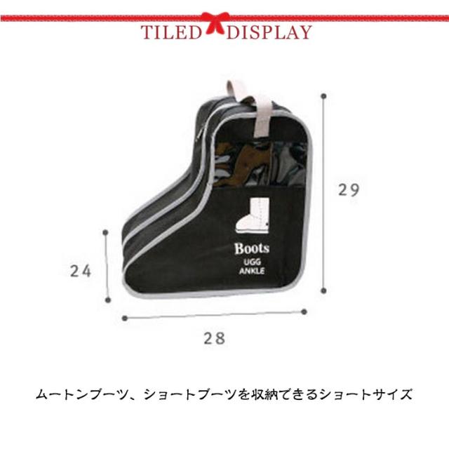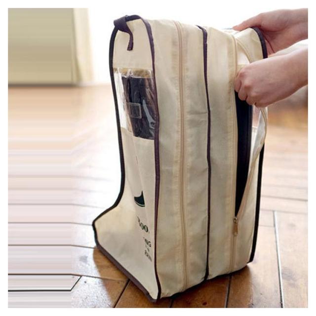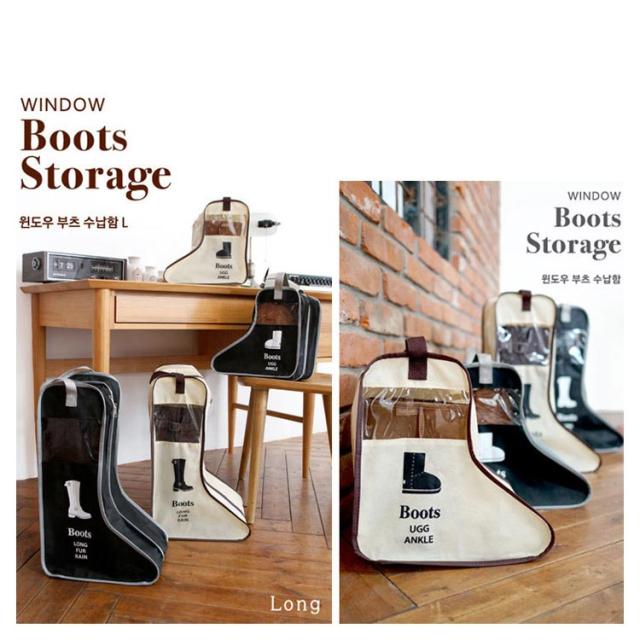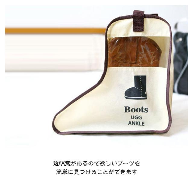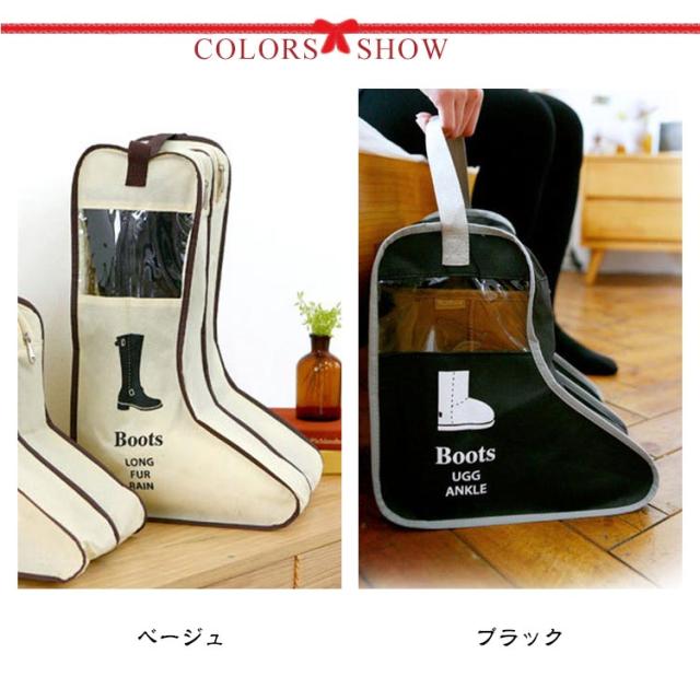 | 中身の見える透明窓が付いているブーツ収納袋です。 透明窓があるので欲しいブーツを簡単に見つけることができます。 ムートンブーツ、ショートブーツを収納できるショートサイズ。 レインブーツ、ロングブーツを収納できるロングサイズ。 裏側に乾燥材入れ専用ポケットを装備されて、防湿剤や芳香剤を入れてお使いいただけます。 手持ちが付いているので、持ち運びに便利なデザインです。旅行、出勤など様々な場合にご利用していただけます。 片方ずつ入れることができます。左右お互いの靴で汚れる心配がありません。 使わない時はコンパクトに折り畳んでいる収納できて、場所は取りません。 | |
