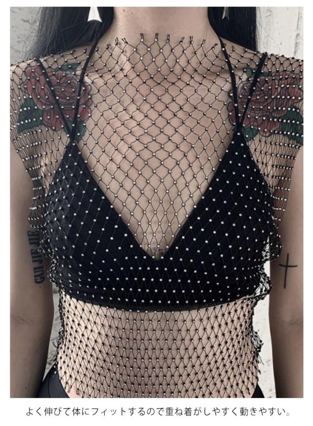 レース ダンス 衣装 メッシュ トップス タンクトップ ショート丈 着丈45cm トップス シースルー カットソー 長袖 キラキラ へそ出し トップス 透け 感 レディース おしゃれ かっこいい セクシー 黒