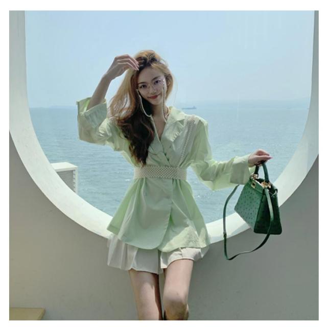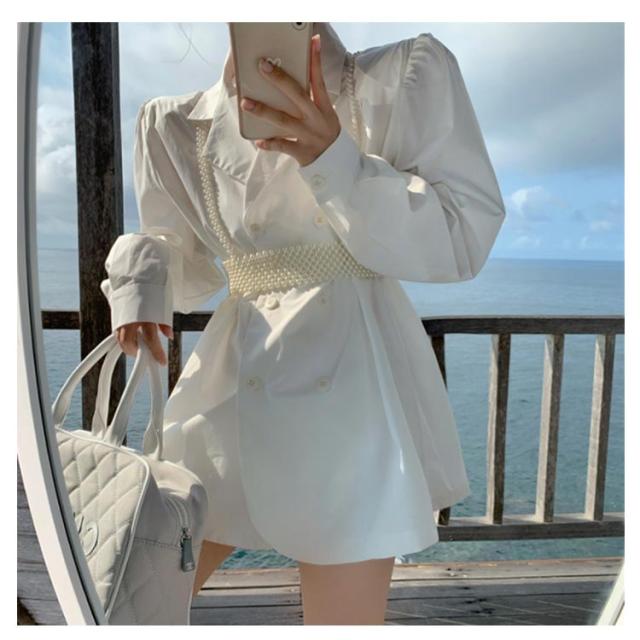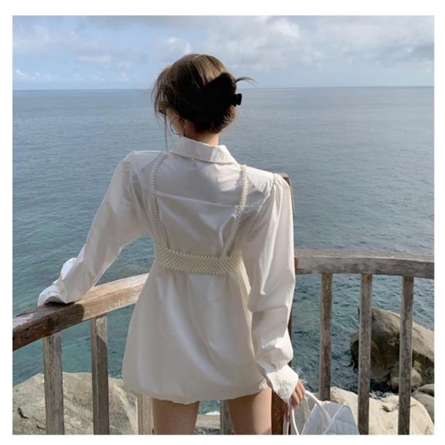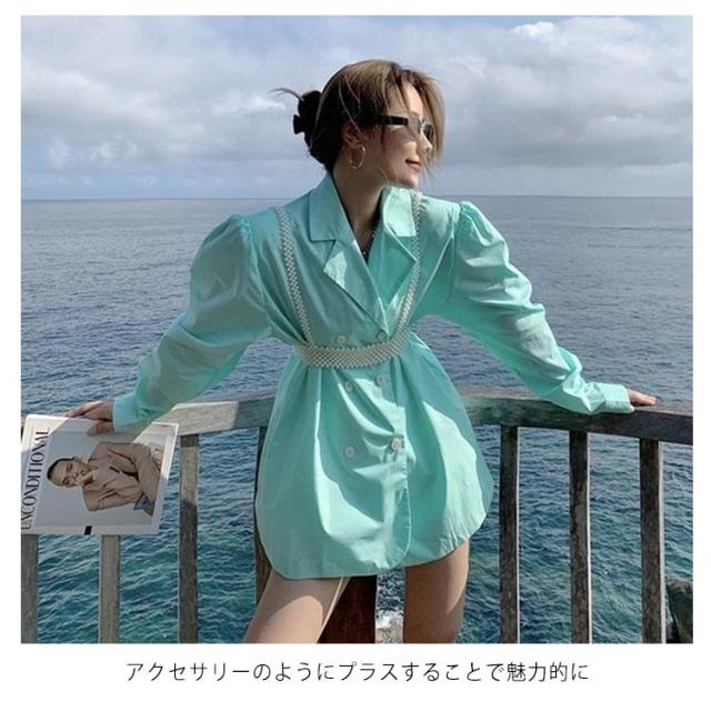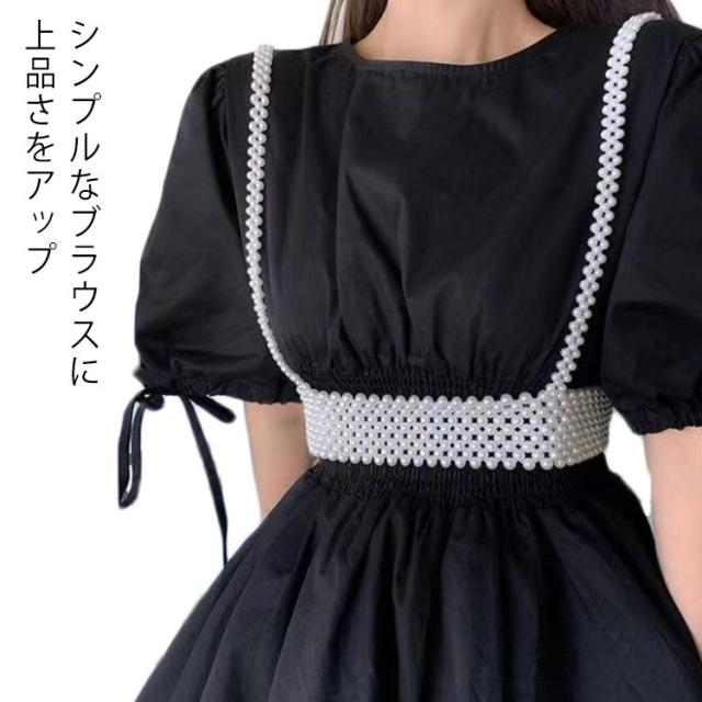 韓国ファッション ベルト 真珠 ベアトップ ベスト ウエストチェーン ホワイト ウエストマーク ジレ ベスト ジレベスト ボレロ トップス カーディガン カーデイガン カーデ