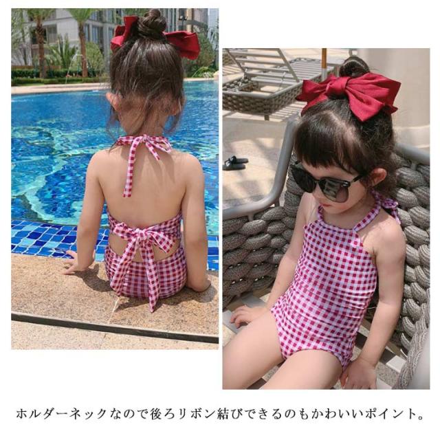 | かわいい子供水着の登場。 ホルダーネックなので後ろリボン結びできるのもかわいいポイント。 女の子らしいハート柄とチェック柄を取り入れます。 プール・海水浴・海外旅行や家族旅行・温泉等様々な場所で大活躍。 | |