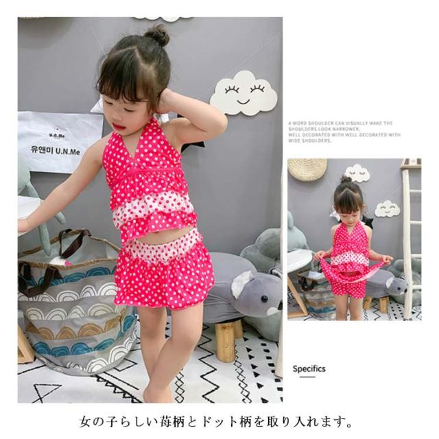 かわいい水着 分体式 子供水着 水着 子供 キッズ 女の子 みずぎ 苺柄 ドット柄 キッズ水着 女の子水着 ガールズ 女児 可愛い 温泉用