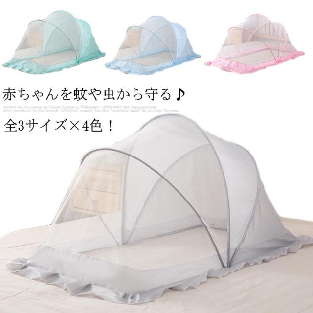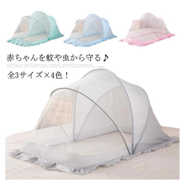 全3サイズ×4色! 蚊帳 ベビー 折りたたみ ワンタッチ 幼児 赤ちゃん カヤ 虫除け 風よけ 底なし 猫対策 ペットよけ 場所を取らず収納できる 折り畳み式 赤ちゃん蚊帳