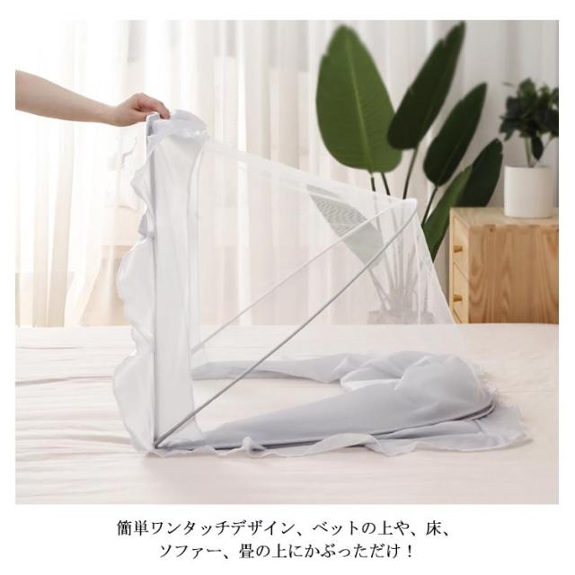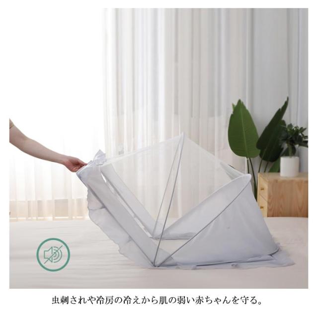 | 赤ちゃんを蚊や虫から守る♪ 簡単ワンタッチデザイン、ベットの上や、床、ソファー、畳の上にかぶっただけ! 虫刺されや冷房の冷えから肌の弱い赤ちゃんを守る。 折りたたみ式ので、場所を取らず収納できるから省スペース。 | |