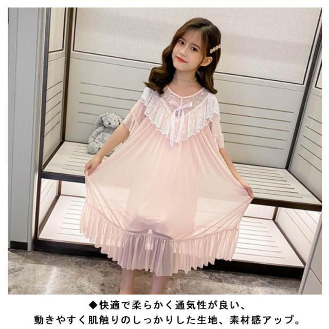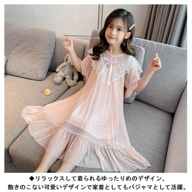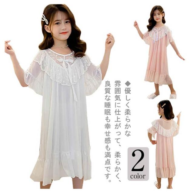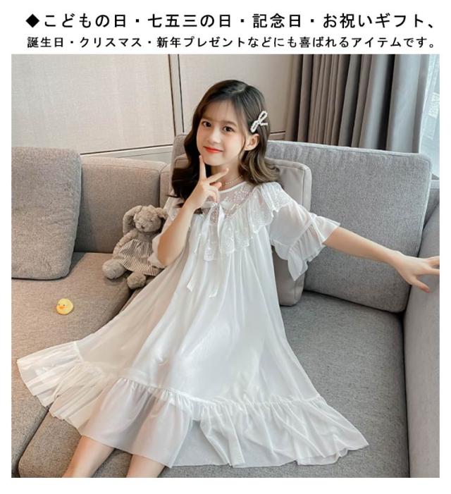 送料無料 ネグリジェ キッズ パジャマ 女の子 リボン 半袖 おしゃれ 姫 子供 子ども こども ワンピース ジュニア 140 150 130 120 110 100 90 ベビー 赤ちゃん 夏 用 子どもパジャマ半袖 ルームウエア かわいい ルーム ウエア プリンセス 薄手 薄い 涼しい 小学生 寝間着 白