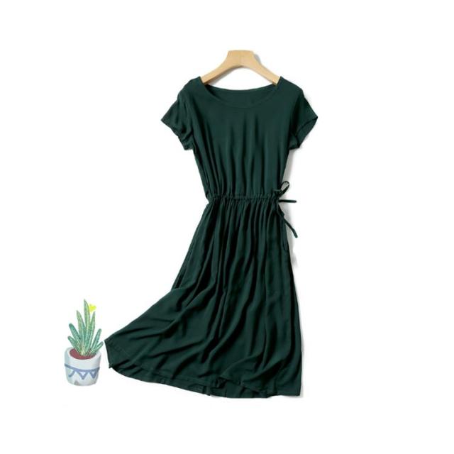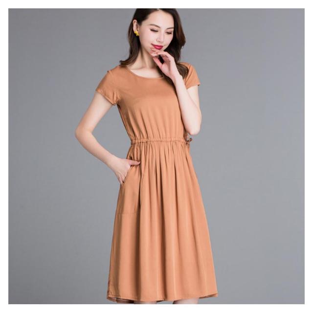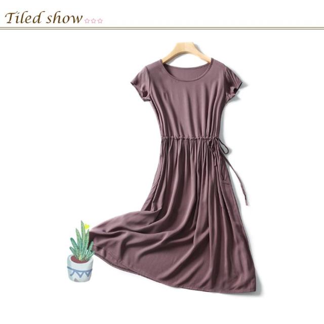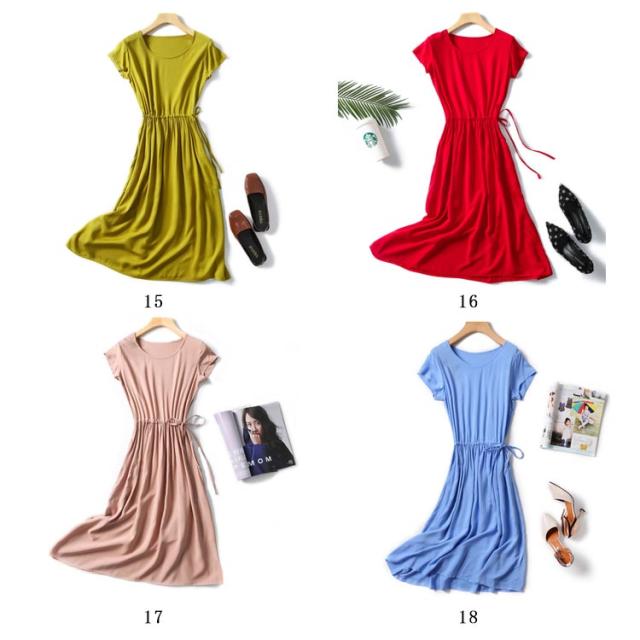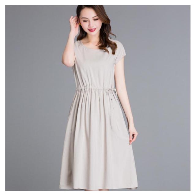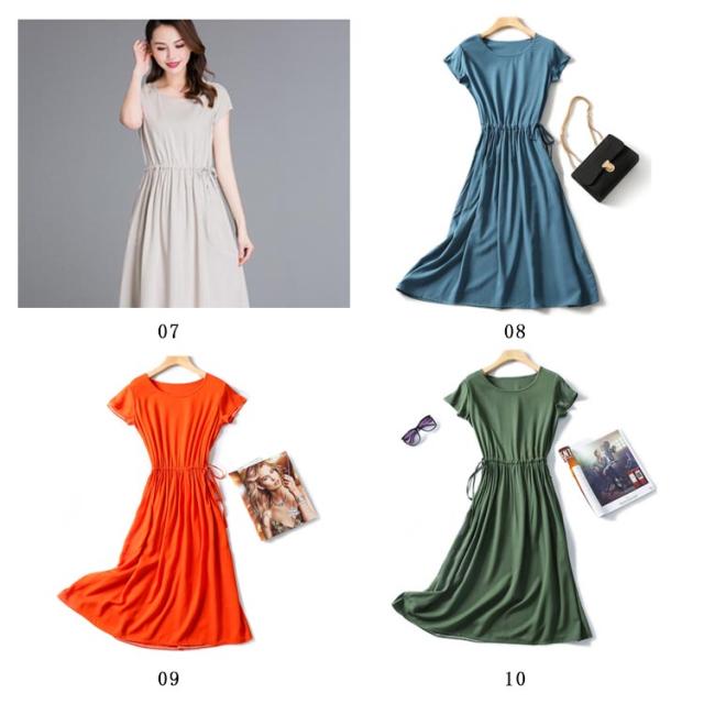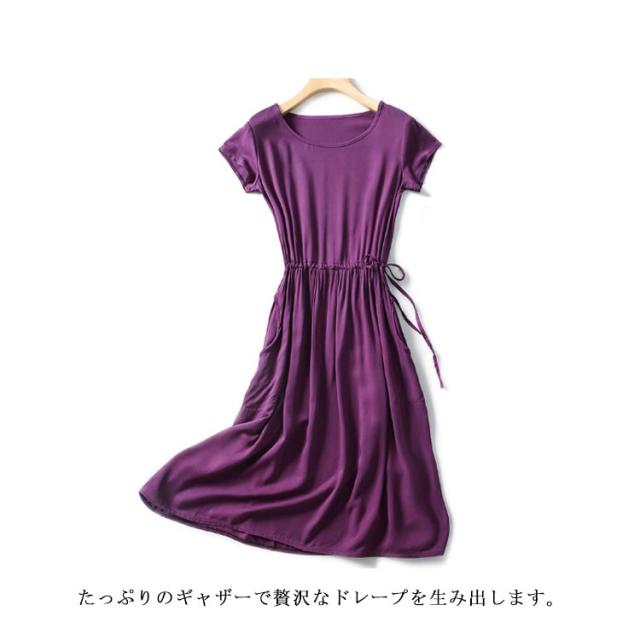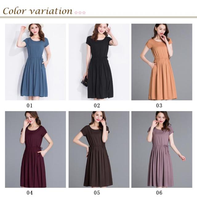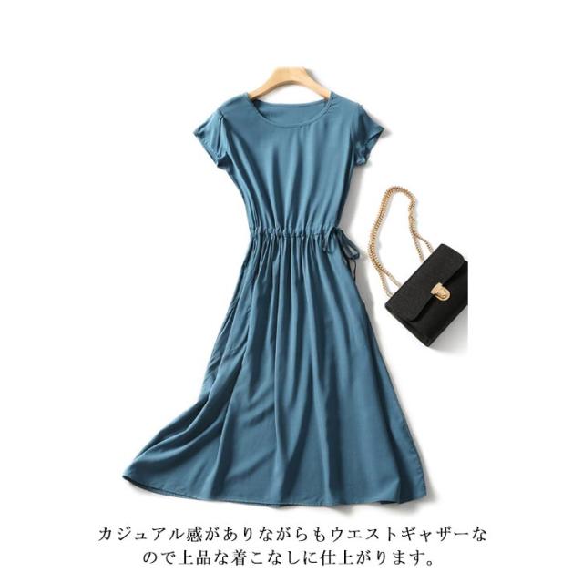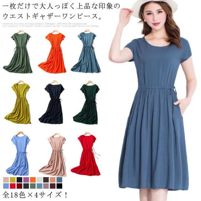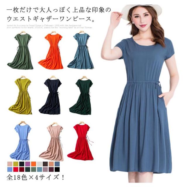 全18色×4サイズ!ウエストギャザーワンピース ワンピース 夏ワンピース 夏 半袖ワンピース れいめ ミディアム 半袖 体型カバー レディース シンプル 無地 大きサイズ