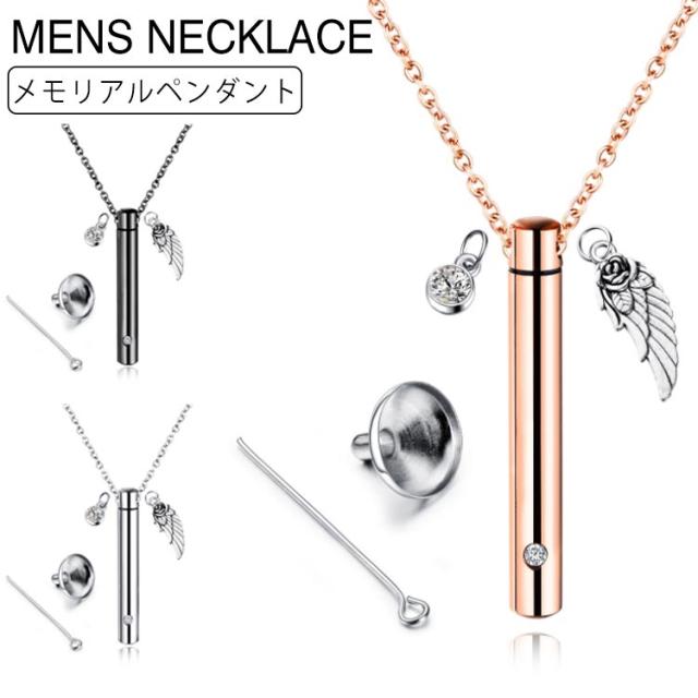 メモリアルペンダント ネックレス ステンレス ネックレス メンズ スティック ネックレス ペンダント 遺骨入れ ペット 愛犬 供養 サージカル ステンレス チェーン ネックレス ジュエリー アクセサリー 送料無料