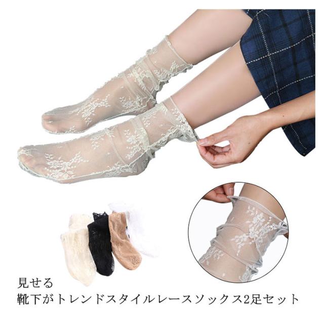 【送料無料】ソックス レディース 夏 総レース 2足セット シースルーソックス おしゃれ かわいい 花柄 総レース 透け感 透けソックス パンプスソックス レディースソックス 靴下 ソックス 春 秋 ソックス 靴下 くつした フェミニン 足元おしゃれ