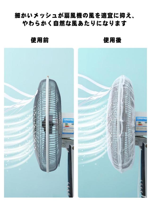 | 子供の指挟みや埃を防止する扇風機カバー2枚セット。 扇風機から放たれる風は通しつつも、指などは入れられないメッシュ状となっていますので、子供がいる家庭でも安全に使えます。 伸縮性に優れているゴム仕様で、裏側から覆いかぶせるように簡単に取り付けられます。 扇風機本体を丸ごと覆うことができる大型サイズで、保管している時に埃が羽根などについてしまうことも防ぐことができます。 汚れが気になったら水洗いすることもできるので、衛生的に使っていけるシンプルな扇風機カバーです。 直径35〜50cmの扇風機に対応して使えます。 | |