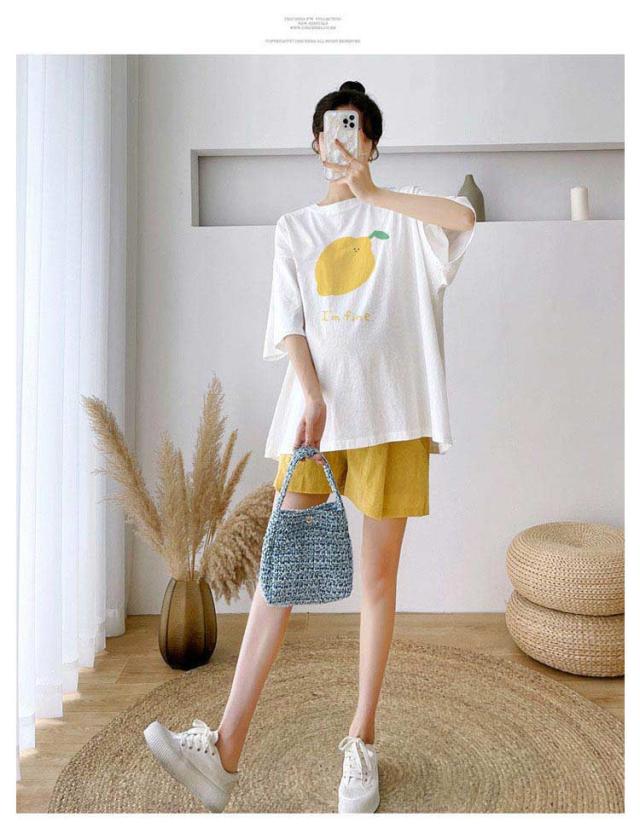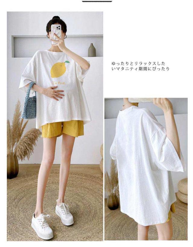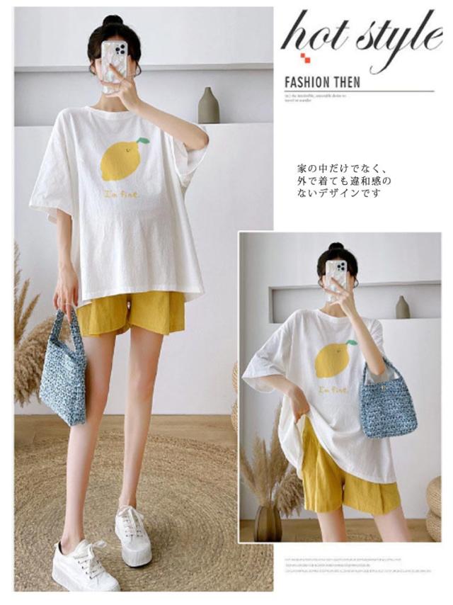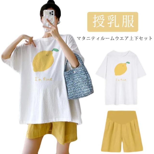 送料無料 レディース 半袖 シャツ 上下セット セットアップ マタニティ 妊婦 マタニティウエア 腹帯 妊婦帯 ショートパンツ ルームウエア ストレッチ ゆったり ハイウエスト ボトムス 薄手 夏新作 授乳服 パジャマ 入院着 産前産後 半パン