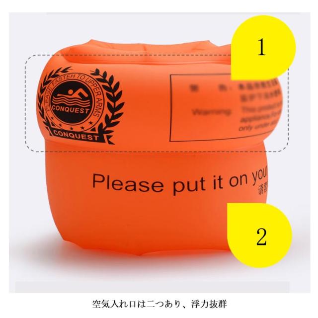 | 腕に装着してプカプカ浮いて楽しく遊べる水泳用補助具アームヘルパー。 空気で1周を膨らんでますので、両脇に密着し、脇から外れることなく安心してお使いいただけます。 浮力抜群!子供から大人まで使えます。水泳初心者にはぜひオススメ。 空気を抜いてコンパクトに収納できるから是非持っていかれることをお勧めします。 | |