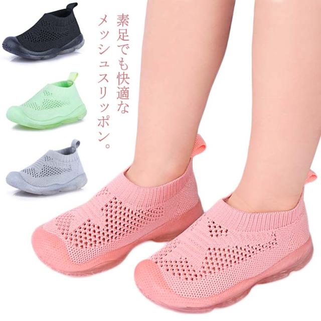 メッシュスリッポン スニーカー 子供靴 サンダル キッズ 女の子 男の子 通気性 スポーツサンダル シューズ 春夏 ぺたんこ 1歳 2歳 3歳 6歳