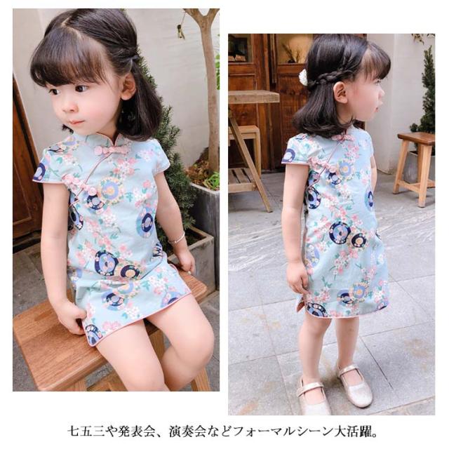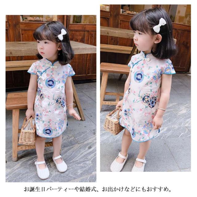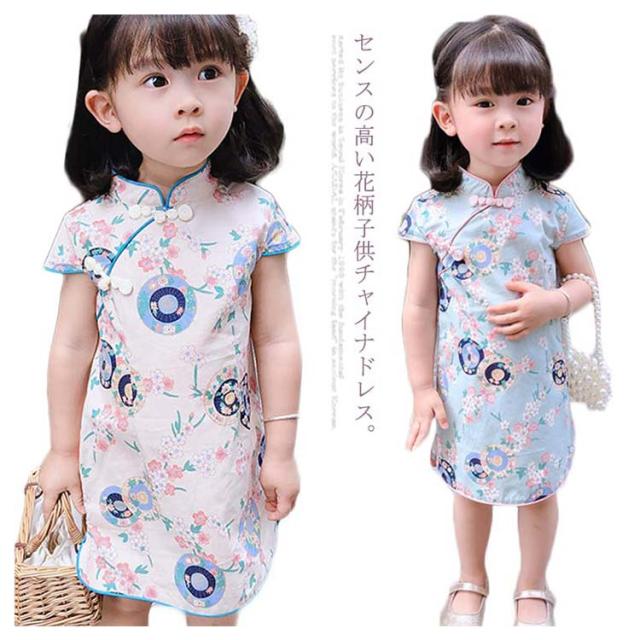 チャイナドレス チャイナ服 子供服 女の子 幼児 赤ちゃん 送料無料 キッズ 半袖 ワンピース 中華風 可愛い 花柄 コスプレ 薄手 夏 お出掛け パーティー