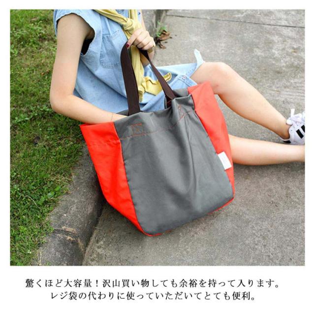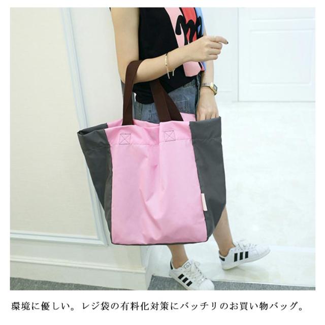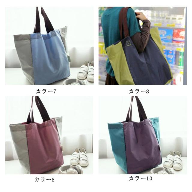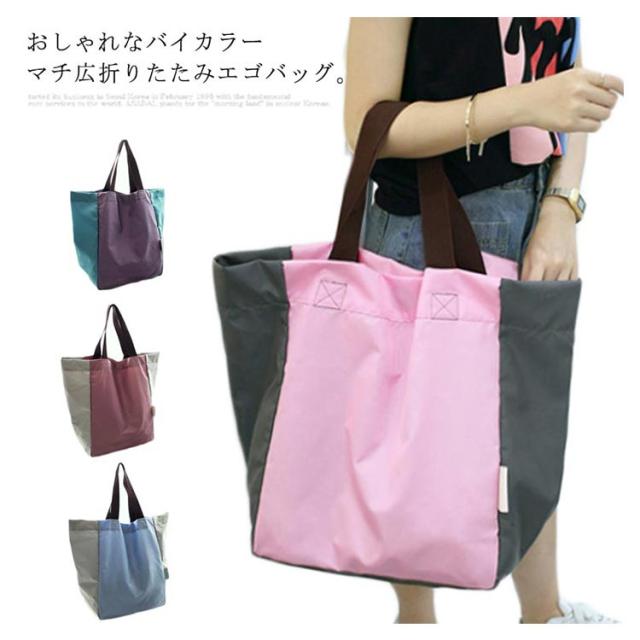 全10色 バイカラー エコバッグ コンビニエコバッグ ジレ袋 送料無料 マチ付き トートバッグ 肩掛け 折りたたみ バッグ ショッピングバッグ 大容量 コンパクトに収納 買い物バッグ 無地 母の日 ギフト