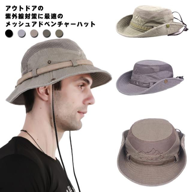 サファリハット メッシュ メッシュキャップ メンズ バケットハット アウトドア UVカット 紫外線対策 【送料無料】アドベンチャーハット 軽量 日よけ 日焼け防止 おしゃれ ハイキング 折りたたみ 無地 シンプル 釣り キャップ メッシュ