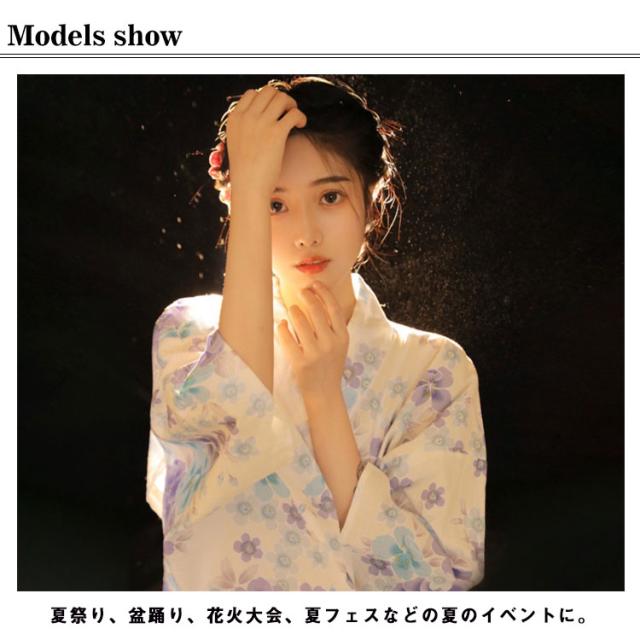 | 3点セット内容:浴衣*1、作り帯(リボン付き)*1、扇子*1 浴衣と帯は写真と同じコーディネートで届くので、浴衣初心者さんも安心です♪ 夏祭り、盆踊り、花火大会、夏フェスなどの夏のイベントに。 フリーサイズ(適応身長約155〜165cm)です。 もともと浴衣は透け感のあるものですので、浴衣用の肌着などをご使用いただくことをお勧めしております。 | |