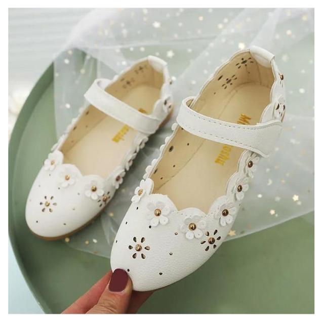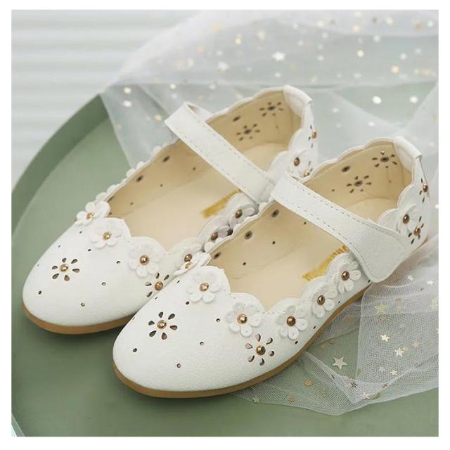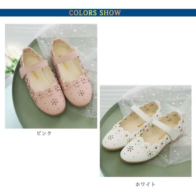 | 花が並んでいて足元から優雅な存在感を演出。 つま先が丸くなっているので、お子様の足の動きを邪魔しません。 フラットシューズなので、長時間、楽々履ける! とても可愛くて、かわいいドレス・子供服・靴下等に合わせやすい。 | |