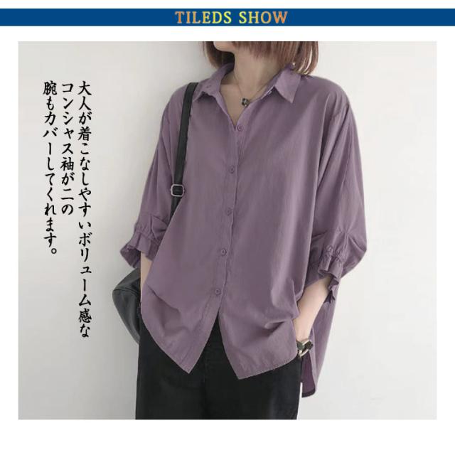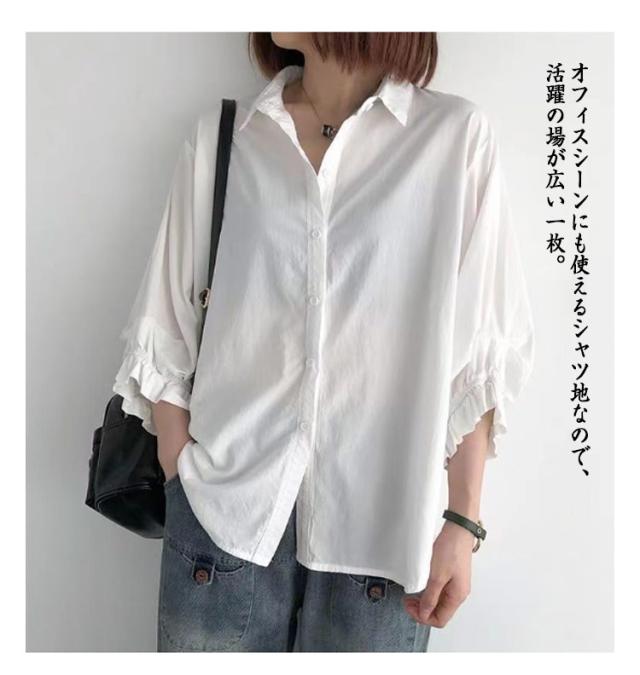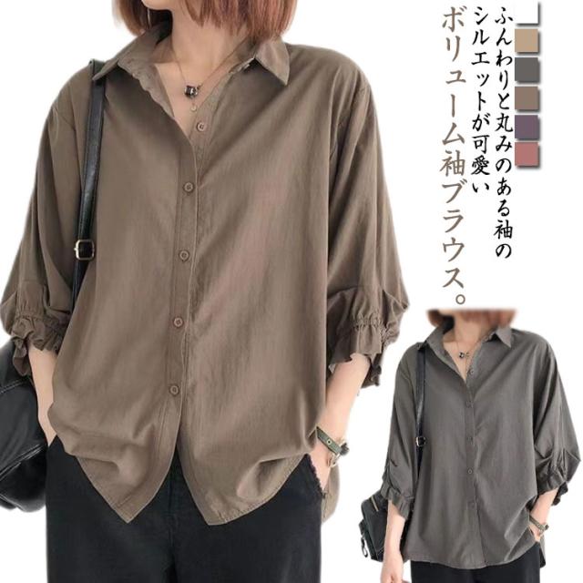 送料無料 ボリューム袖ブラウス トップス レディース ブラウス シャツ 涼しい 半袖 シンプル ボリュームスリーブ タック バルーン袖 シャツブラウス 羽織り トップス 無地 大きいサイズ ゆったり 春夏用 透けない