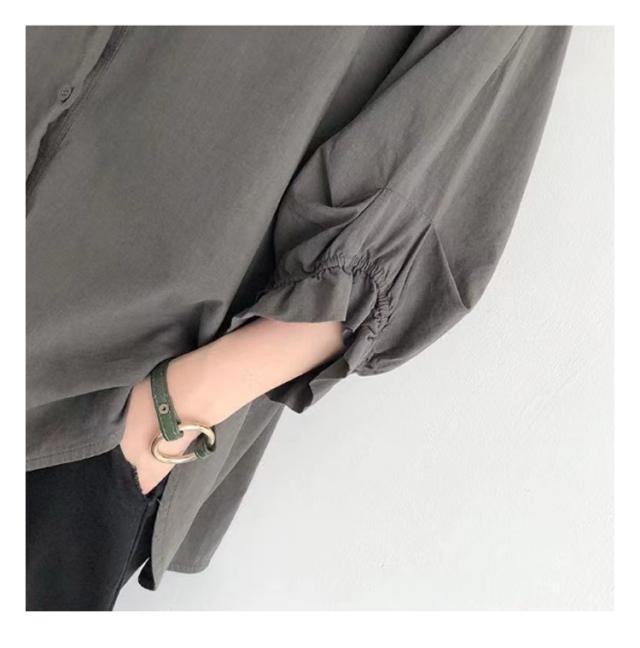 | ふんわりと丸みのある袖のシルエットが可愛いボリューム袖ブラウス。 大人が着こなしやすいボリューム感なコンシャス袖が二の腕もカバーしてくれます。 ゆったりシルエットで気になる部分をカバーして、痩せ見え効果ときちんと感を演出します。 フロントボタン仕様なので軽い羽織としてもお使いいただけます。 オフィスシーンにも使えるシャツ地なので、活躍の場が広い一枚。 楽な着脱ができ、透けるなどを心配することなく、お洒落を楽しんでいただけるアイテム。 | |