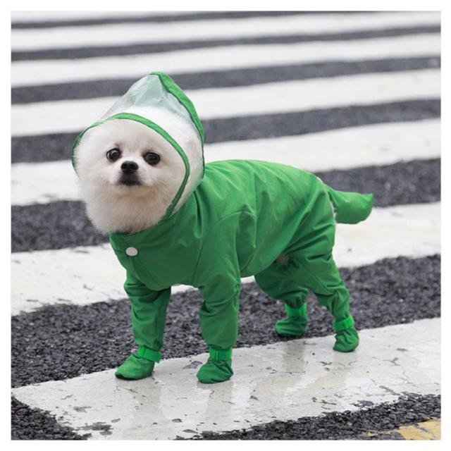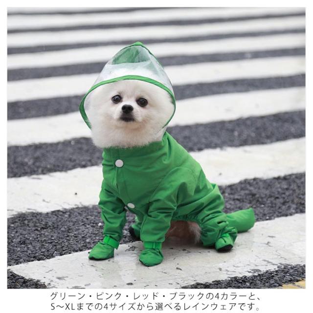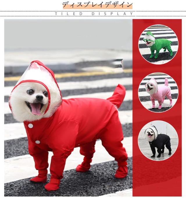 | 足下までしっかり覆える犬用レインコート。 靴と一体になっているので、雨の日のお散歩も安心♪ 撥水と防水加工が施されており、強風や雨・雪または粉塵などを防げます。 グリーン・ピンク・レッド・ブラックの4カラーと、S〜XLまでの4サイズから選べるレインウェアです。 | |
