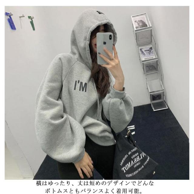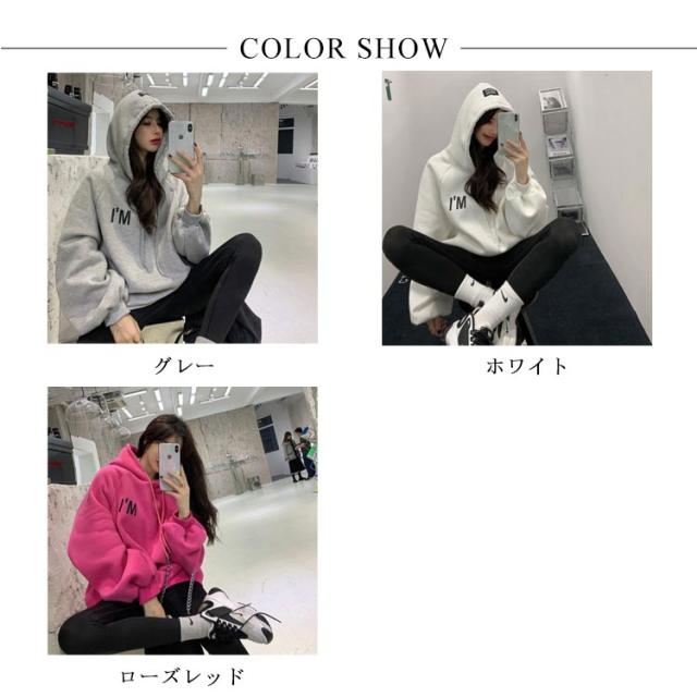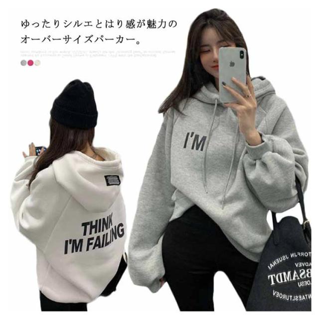 裏起毛 パーカー レディース トップス フード付き オーバーサイズ 長袖 裏パイル スウェット トレーナ プルオーバー ゆったり 大きいサイズ ビッグシルエット 大きめ 春 秋 韓国ファッション