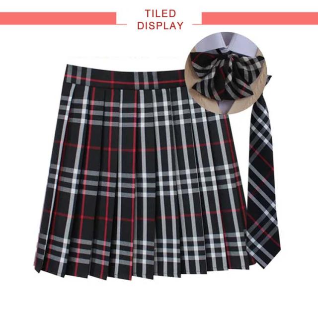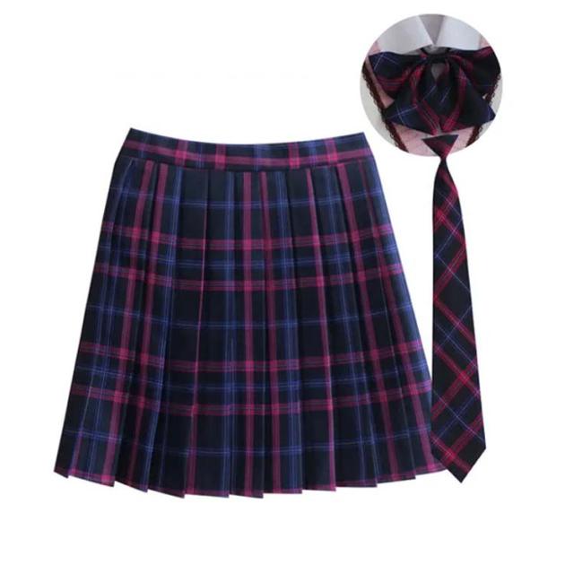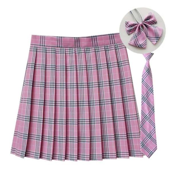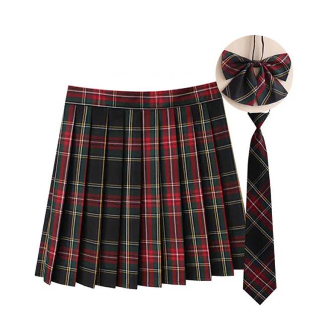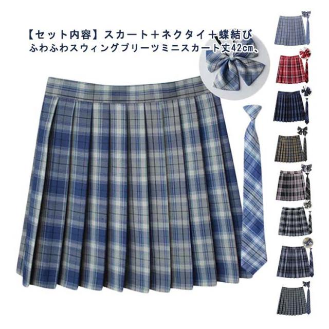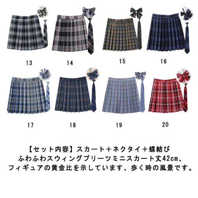 全20色!学生制服 3点セット 蝶結び+ネクタイ+スカート チェック柄 スカート プリーツスカート ミニ レディース 高校生 中学生 学生 通学 女子 入学 スクール 女子高生 制服 リボン 女子制服 学生服 コスプレ 仮装 コスチューム 送料無料