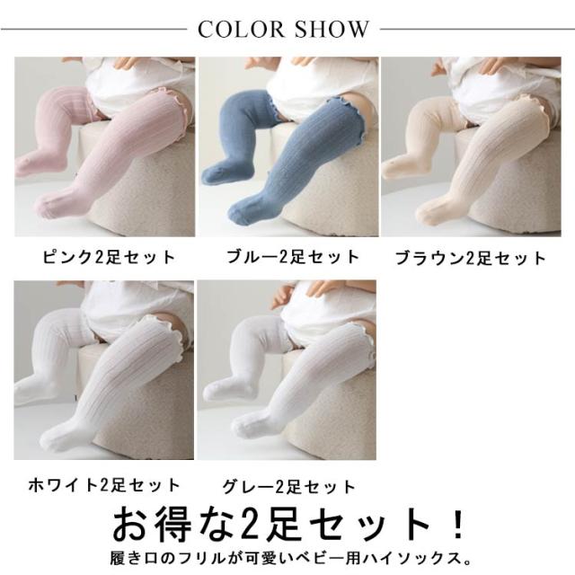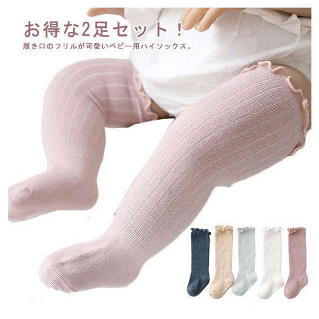 お得な2足セット!ニーハイソックス 靴下 ベビー 2足セット 送料無料 ハイソックス キッズ 子供用靴下 赤ちゃん 新生児 靴下 ソックス 男の子 女の子 ベビー用品 フリル 可愛い ロング ニーハイ かわいい 1歳 2歳 3歳 春 秋 冬