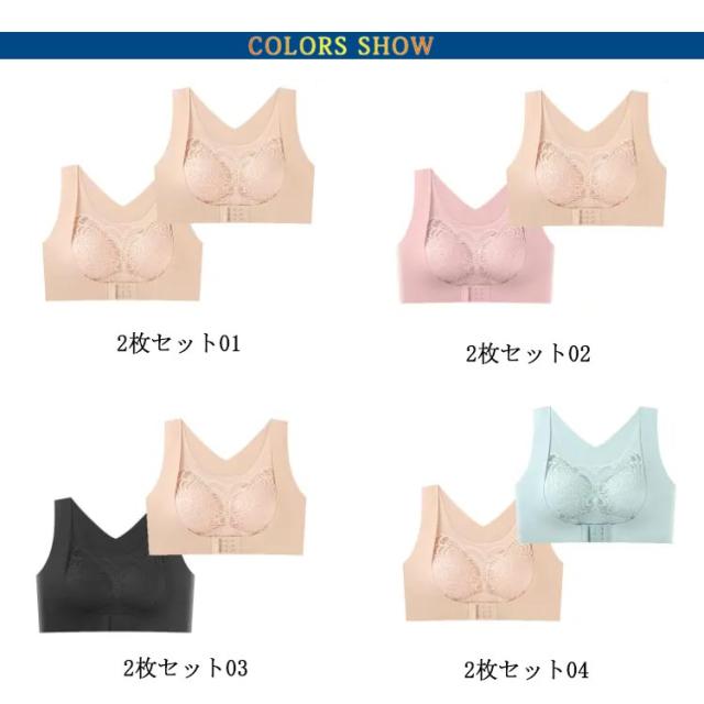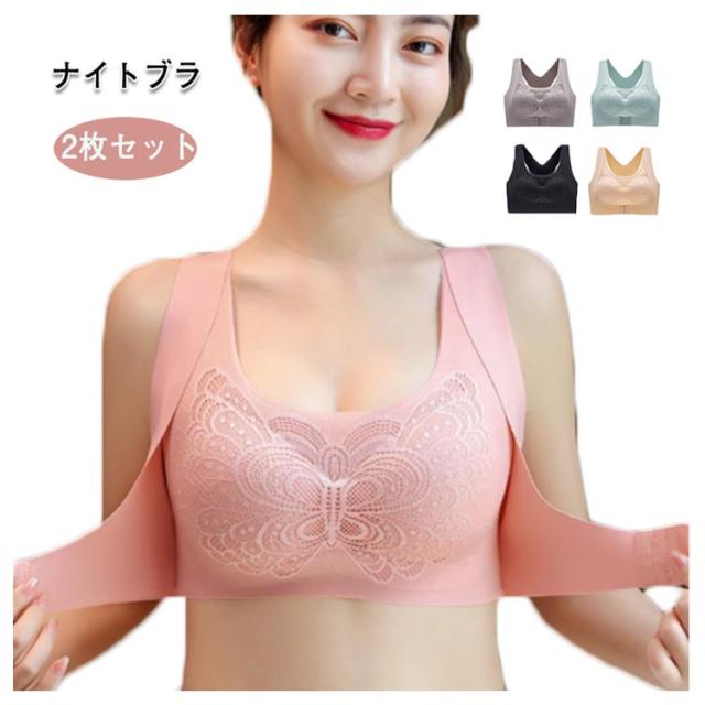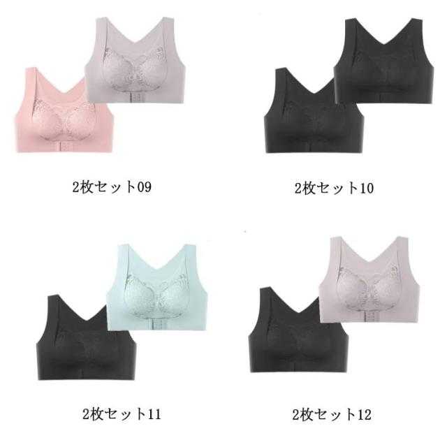 猫背補正 バストアップ ブラ 2枚セット レース シームレス ノンワイヤー ブラジャー パッド入り ナイトブラ 下着 インナー 送料無料