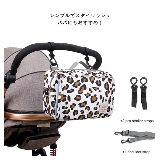 | ベビーカーに付けれる多機能オムツポーチです。 ベビーとのお出かけ時に必要なおむつや小物をまとめて入れられるポーチ。 毎日のお散歩やお出かけに◎ハンド&ショルダーの2WAY ベビーカーの持ち手に付けれるから両手が自由に! 軽い素材だから荷物を入れても重くなりにくい。 お着替えも入る、たっぷり大容量。 汚れにくく、安心の撥水加工。 前面からすぐにおしりふきやポケットティッシュが取り出しやすい。 おしりふきだけでなく、ウェットシートも入るのでおむつが外れた後も長くお使いいただけます。 シンプルでスタイリッシュ。パパにもおすすめ! | |