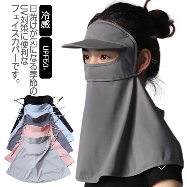 フェイスカバー uvカット 冷感 ネックカバー UV UPF50+ バイザー付き サンバイザー 一体型 レディース ゴルフ 日除け ネックガード 日焼け止め 洗える 顔 首 ラッシュガード 接触冷感 ひんやり 夏 おしゃれ 紫外線 熱中症対策 テニス ジョギング ランニング バイク 送料無料