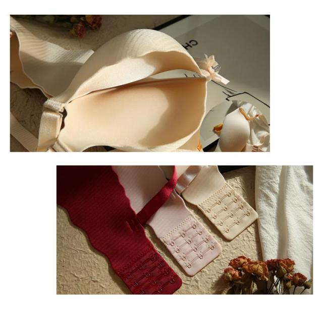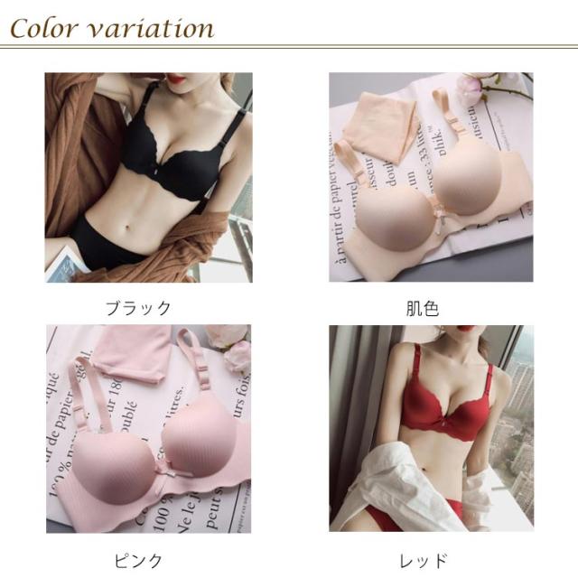 | セクシーで盛りのブラと可愛いショーツのセットの登場です。 着心地楽なノンワイヤーなのにしっかりボリュームUPしてくれます。 下厚パッドが自胸を潰すことなくふんわりと押し上げて谷間をメイク! アウターにひびくにくいデザインで長時間着用していてもストレスフリー! 授乳後、産後でも苦しくない仕様で産後のおかえりブラに大好評! | |