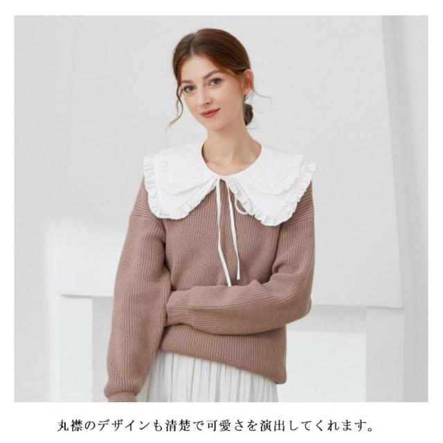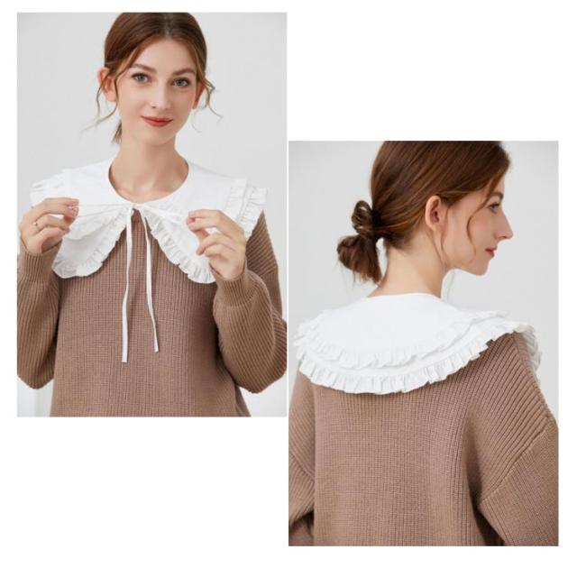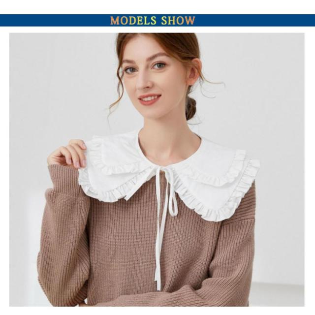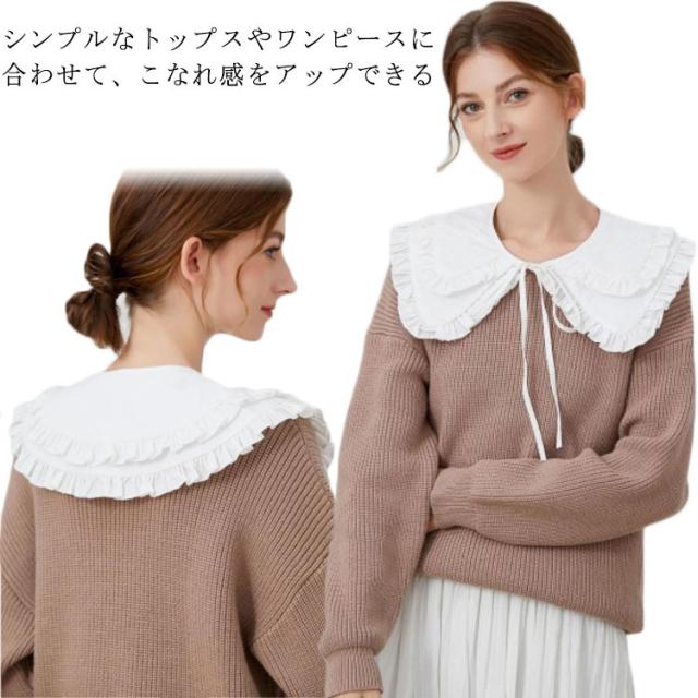 | シンプルなトップスやワンピースに合わせて、こなれ感をアップできる 大きめの襟は華やかなアクセントになり、いつもと違ったコーデを楽しめます♪ 丸襟のデザインも清楚で可愛さを演出してくれます。 トップスからワンピまで、幅広く活躍します。 | |