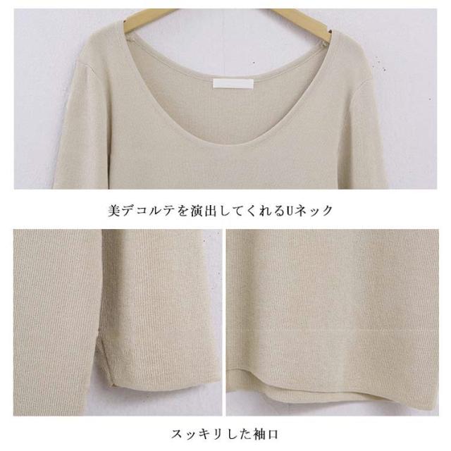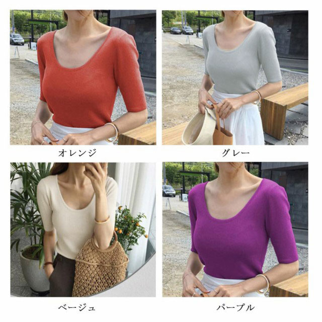 | 洗練されたデザインがおしゃれなニットトップス。 清涼感のある着心地、暑い季節も快適で大活躍。 大人が着やすい上品なテイストに仕上がってUネックデザイン、落ち着いた雰囲気がプラス。 シンプルな無地デザインなので、柄物ボトムスなどにも相性抜群。 豊富なカラバリで、色違いが欲しくなる5分袖ニットセーター。 リネンパンツやカラーパンツ、マキシスカートなど、どんなボトムスともコーディネートできるから、着まわし力◎ デイリー使いはもちろん、オフィスにもお出かけにも着回しできて、様々な場面で大活躍。 | |