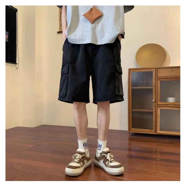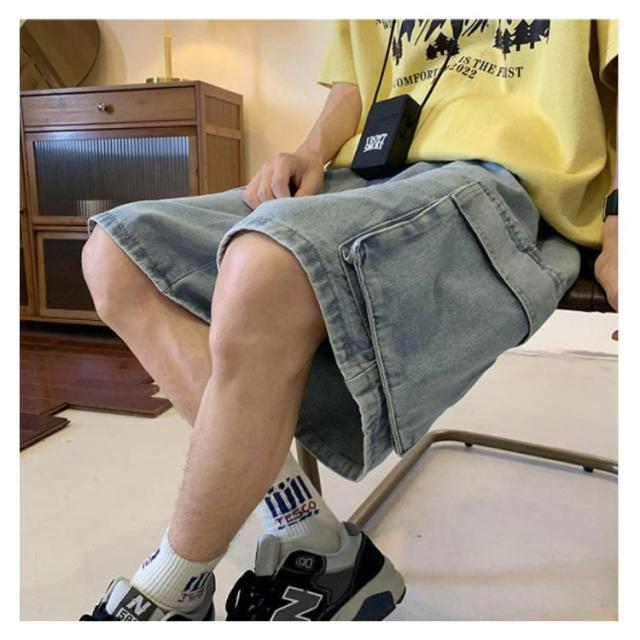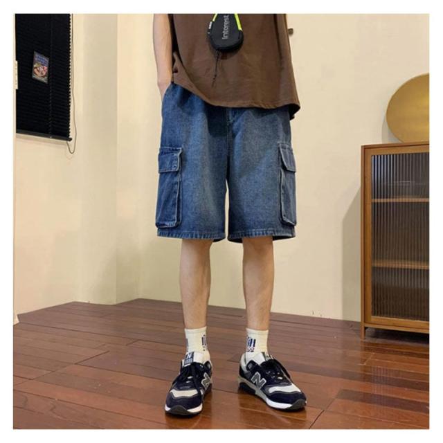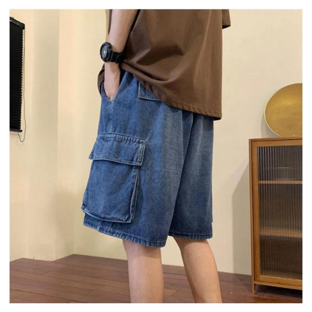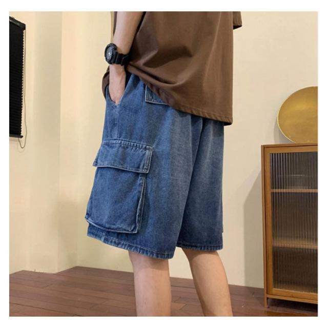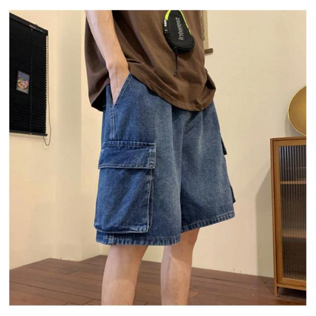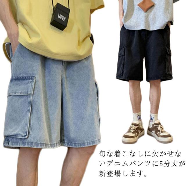 ハーフパンツ デニムショーツ メンズ ルーズ感 ゆったり ジーパン ショートパンツ 半ズボン 短パン 5分丈 カジュアル ウエストゴム 夏物 ストリート ポケット付き 送料無料