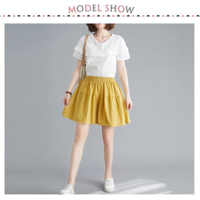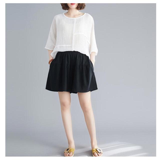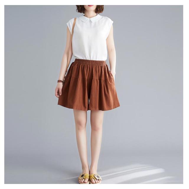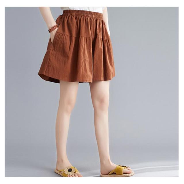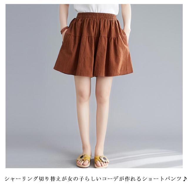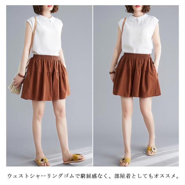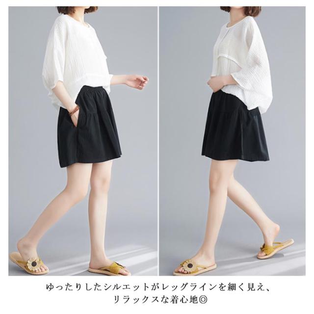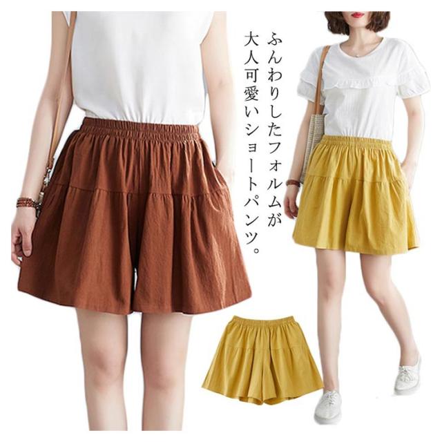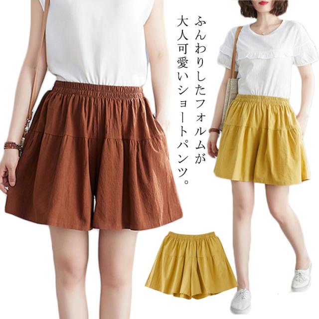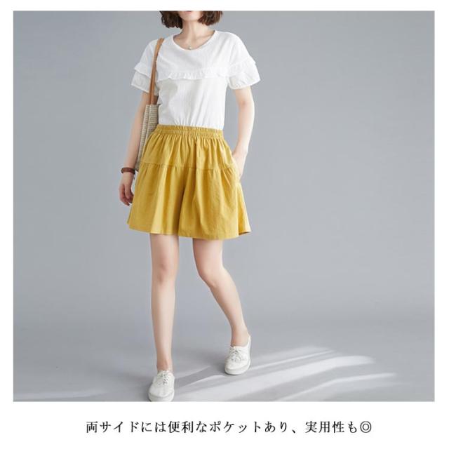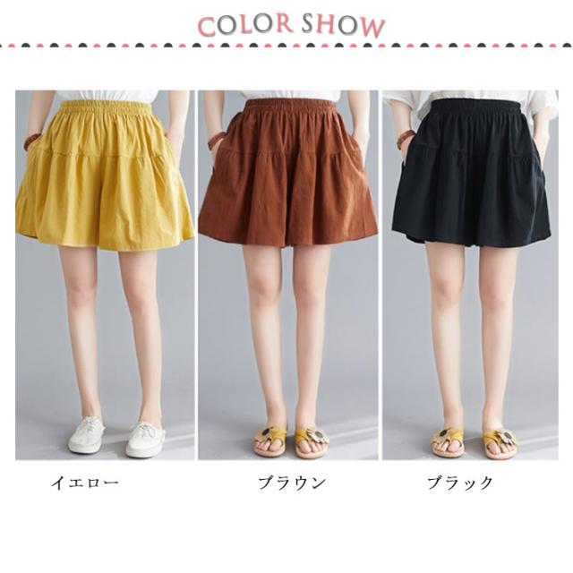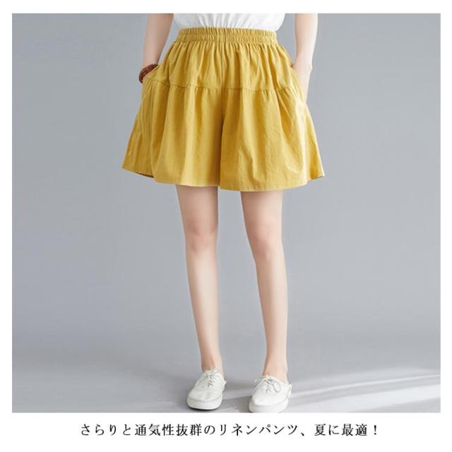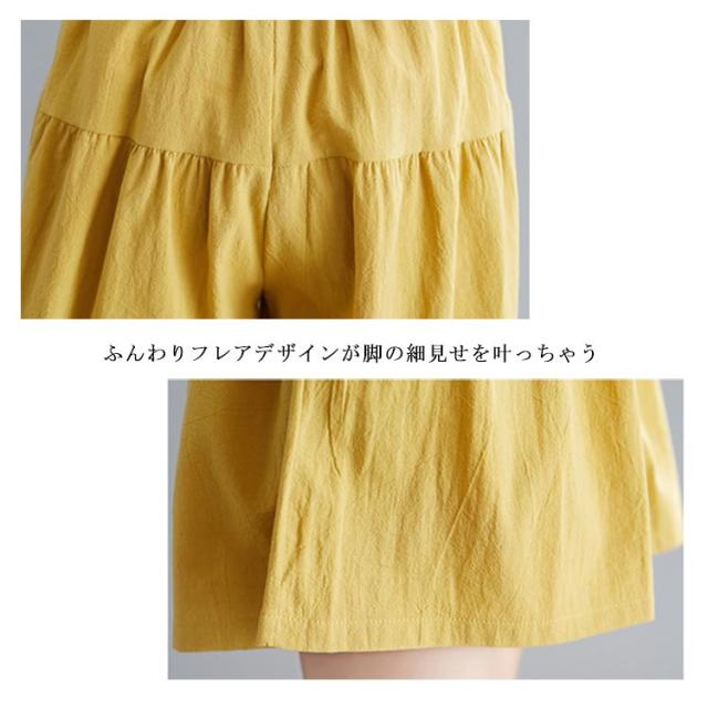 ショートパンツ ワイドパンツ リネンパンツ 麻 キュロットスカート 送料無料 レディース 無地 ウェストゴム フレア 綿麻 部屋着 大きいサイズ