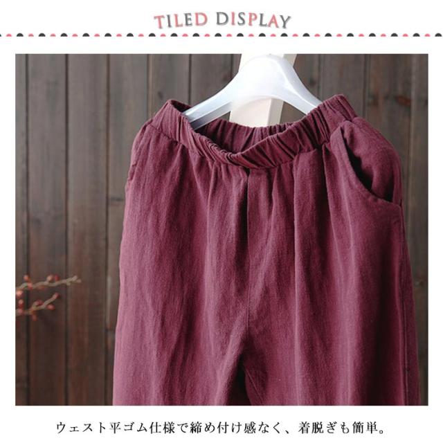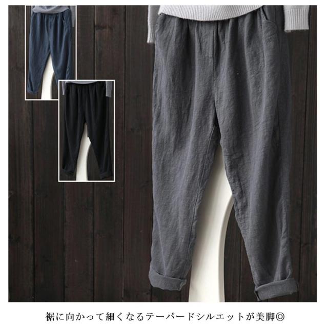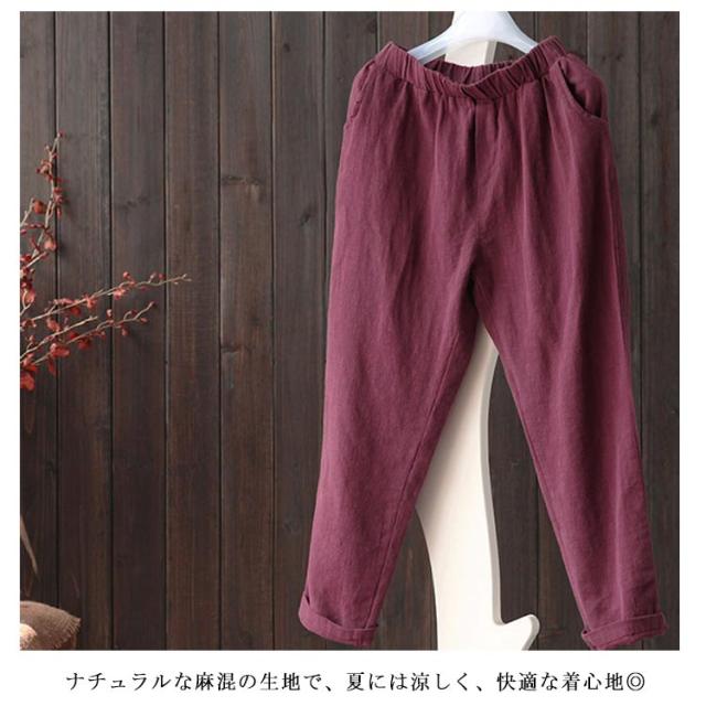 リネンパンツ 綿麻 パンツ サルエルパンツ 9分丈 アンクルパンツ ウェストゴム レディース 送料無料 イージーパンツ テーパードパンツ 夏服 2020 新作