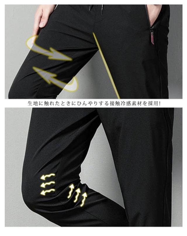 | 生地に触れたときにひんやりする接触冷感素材を採用!暑い季節にマストなパンツです。 「冷感生地を使って、暑いことをなくなり!」通気性よい冷感生地を使って、柔らかく、手触り冷え冷え、まるでクラーをつけているような着心地よさ抜群。 サイドポケットにはジップ付きなので中身がこぼれない。 無地色で、無難なデザイン。ビジネスシーンなどにはもちろん、通勤通学のパンツとしても行ける一着。 弾性のある紐はしっかりとしたウエストバンドに合わせて、体型に合わせてサイズを調整できるので快適に穿くことができます。 | |