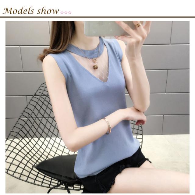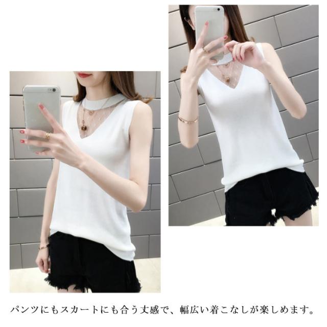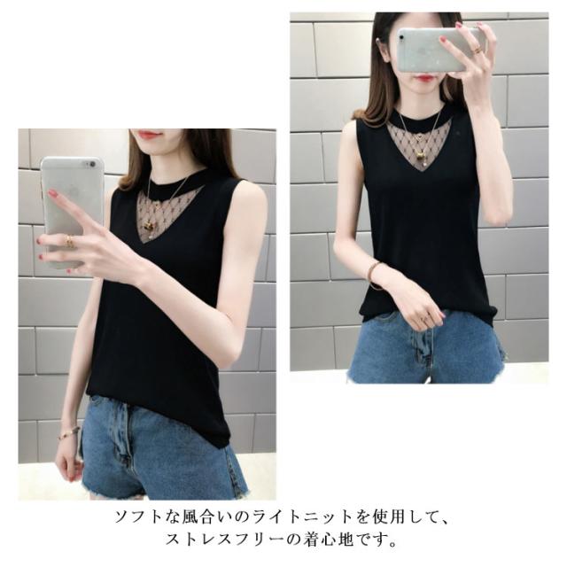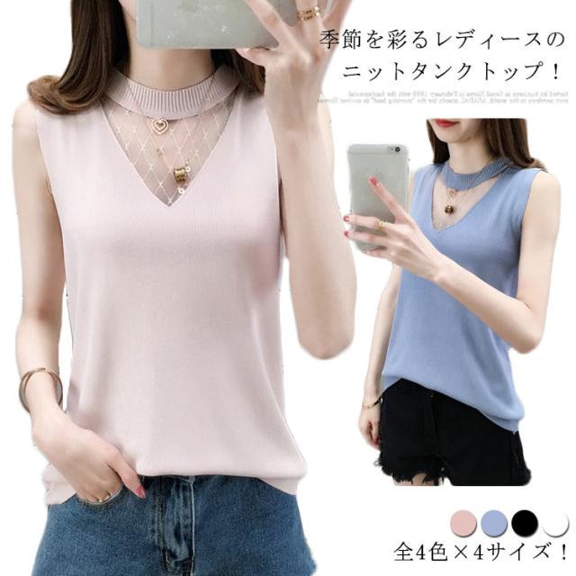 全4色×4サイズ!シースルー切り替え ニットタンクトップ タンクトップ 冷感タンクトップ ノースリーブ ニットトップス 夏服 インナー トップス 春夏 レディース
