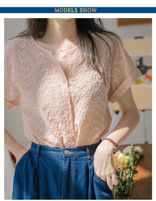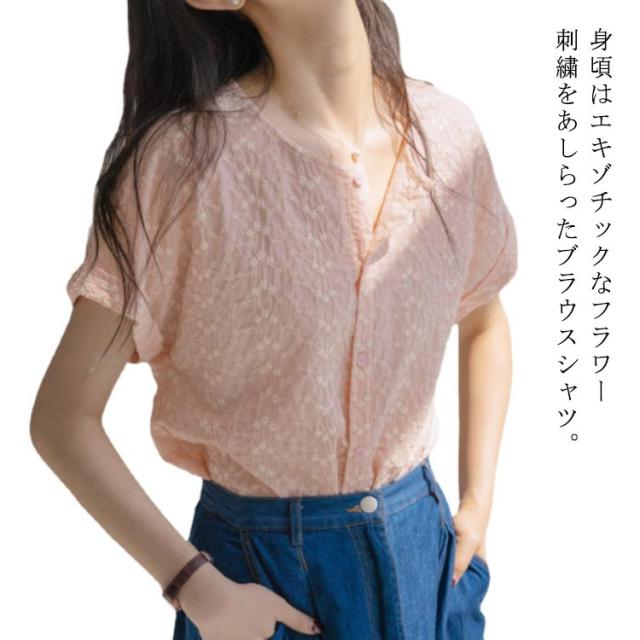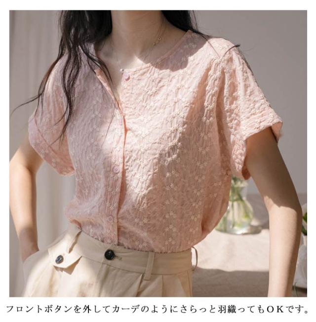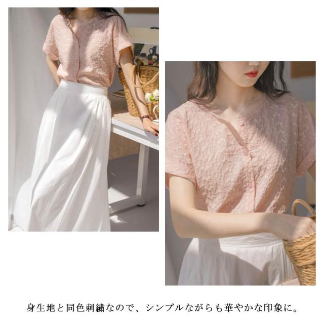 送料無料 刺繍 ブラウス シャツ レディース 半袖 フレンチスリーブ トップス カットソー 羽織 2WAY レース刺繍 立体刺繍 花柄 フラワー クルーネック スキッパーネック 薄手 おしゃれ 通勤 きれいめ 仕事 可愛い 大きいサイズ