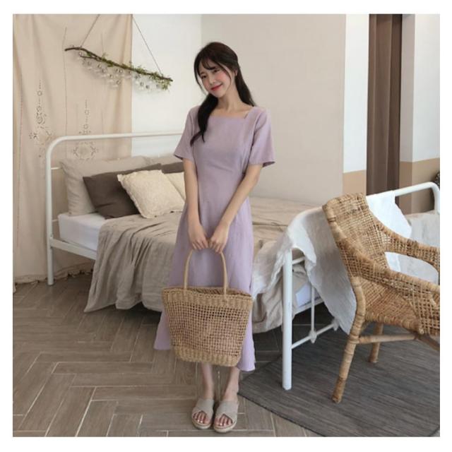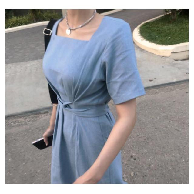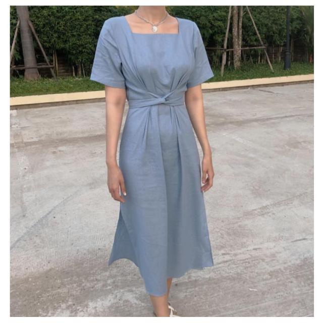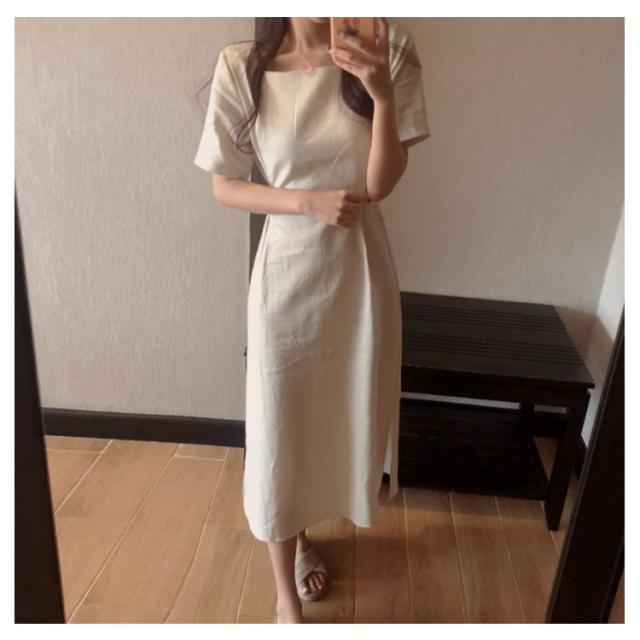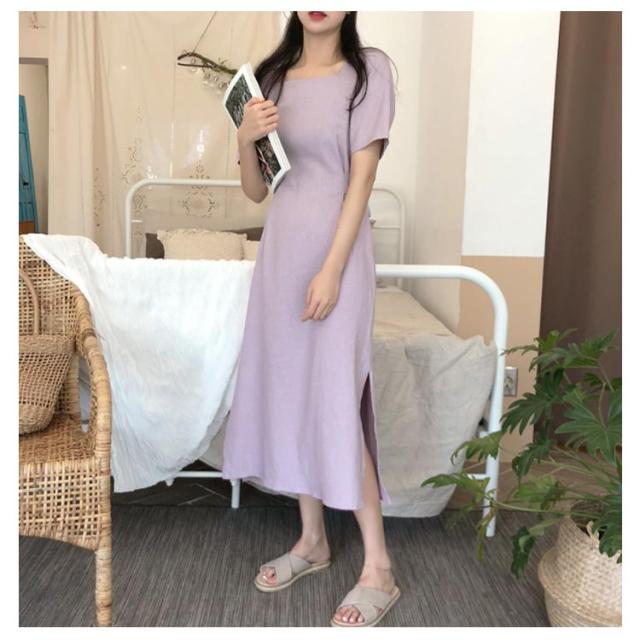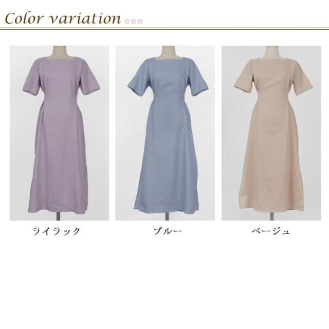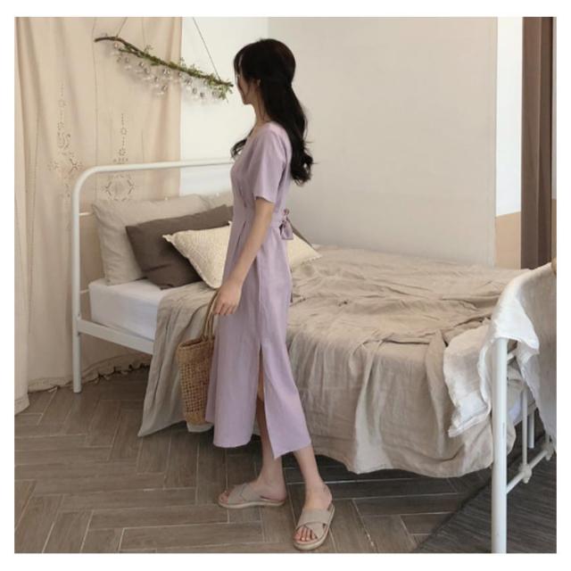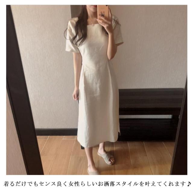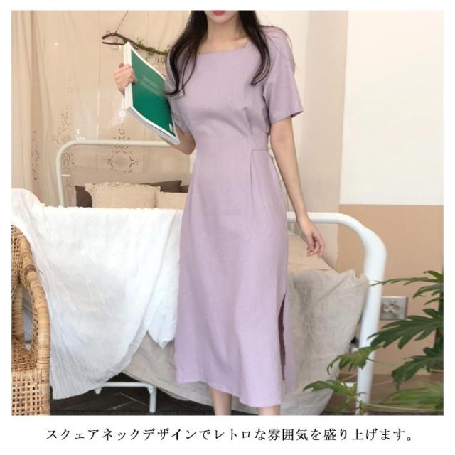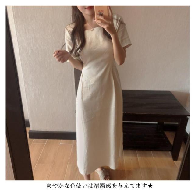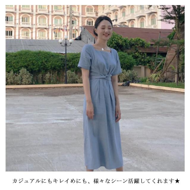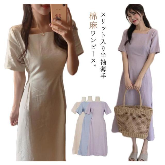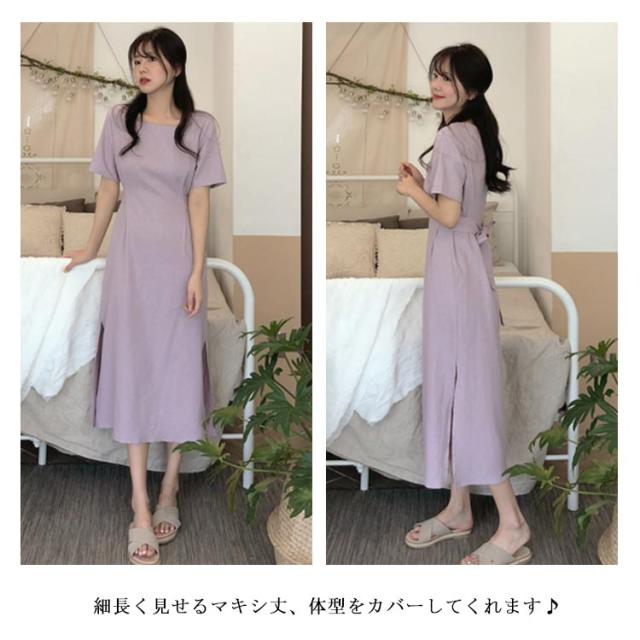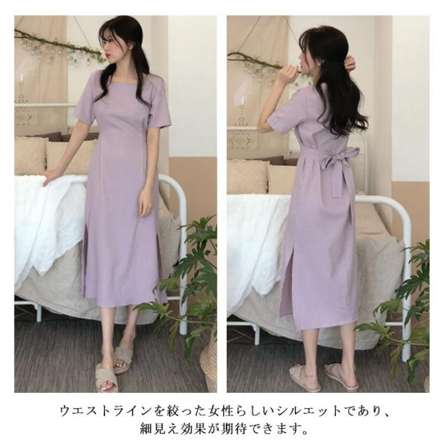 ワンピース レディース ミモレ丈ワンピース ロングワンピース 半袖ワンピース 綿麻 リネン スリット入り リボン付き ロング丈 ゆったり ミモレ丈 スッキリ 無地 シンプル 優雅 エレガント お洒落 キレイめ 夏新作 送料無料