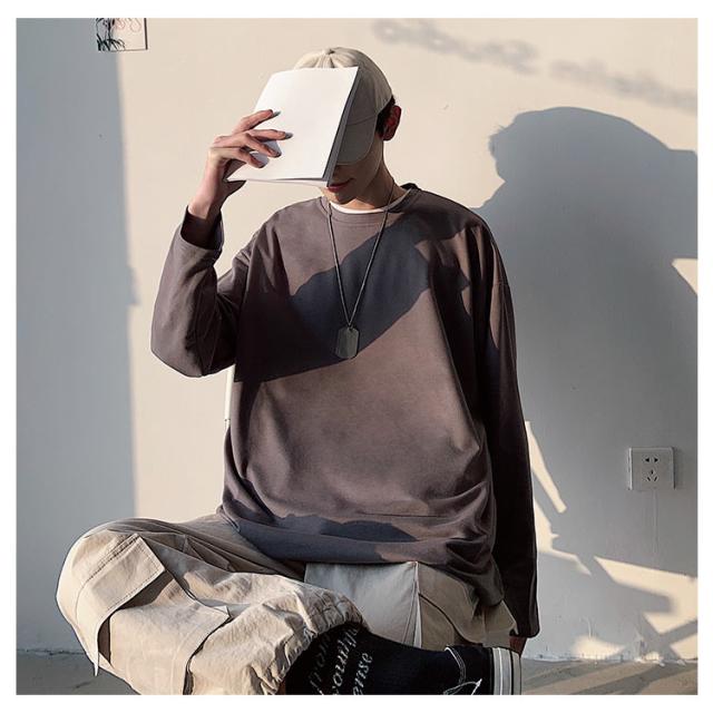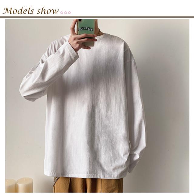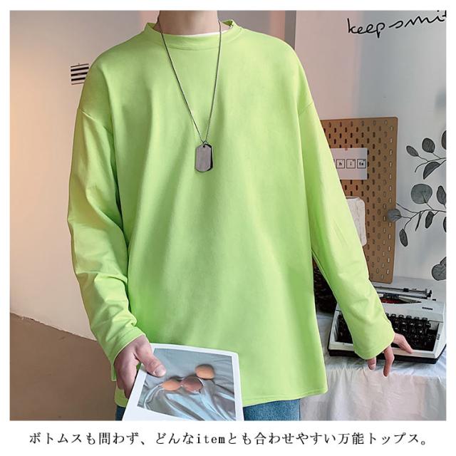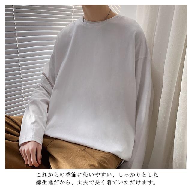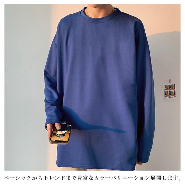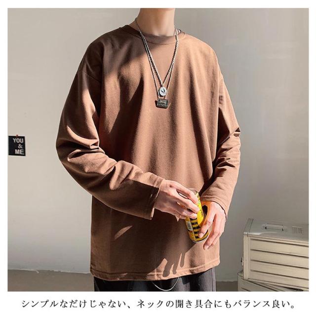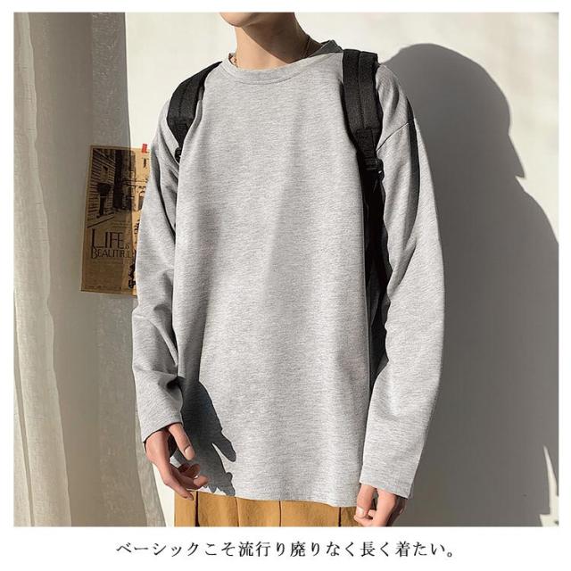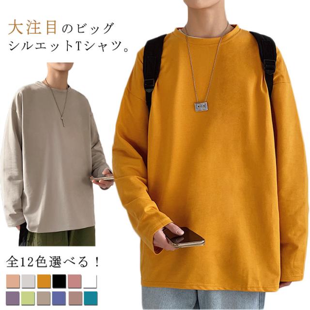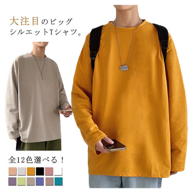 全12色選べる!Tシャツ メンズ 長袖Tシャツ 長袖 無地tシャツ ビッグシルエット ビッグTシャツ トップス 大きサイズ ラウンドネック カジュアル 春服 春物 通学 レイヤード