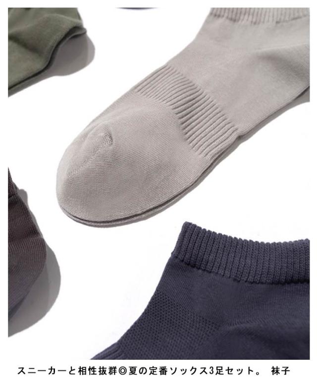 | スニーカーと相性抜群◎夏の定番ソックス3足セット。 ?子 シンプルで使いやすい無地デザイン。 上質なコットンを使用しているので履き心地抜群。 伸縮性に優れていて一日履いても締め付け感がなく、しっかりと足にフィットします。 つま先補強で毎日の着用やお洗濯も安心。 ビジネスマンから大学生・高校生まで幅広くご使用いただけます。 | |