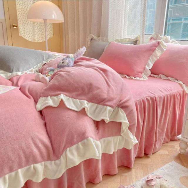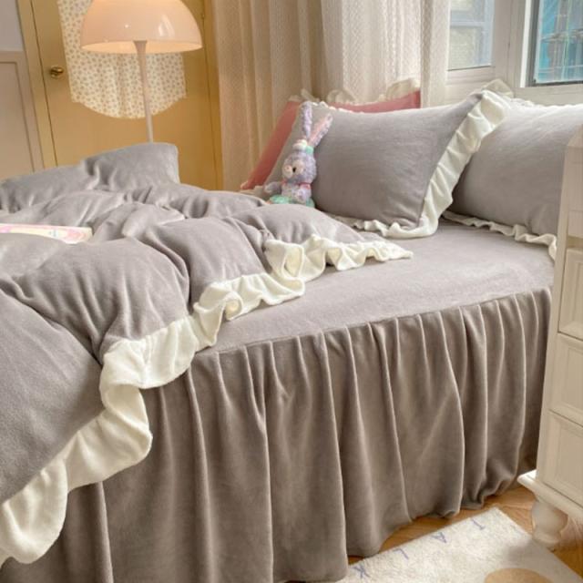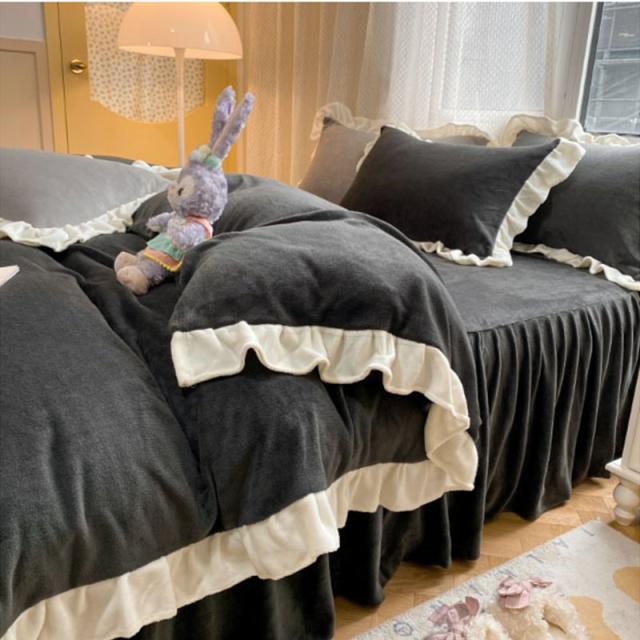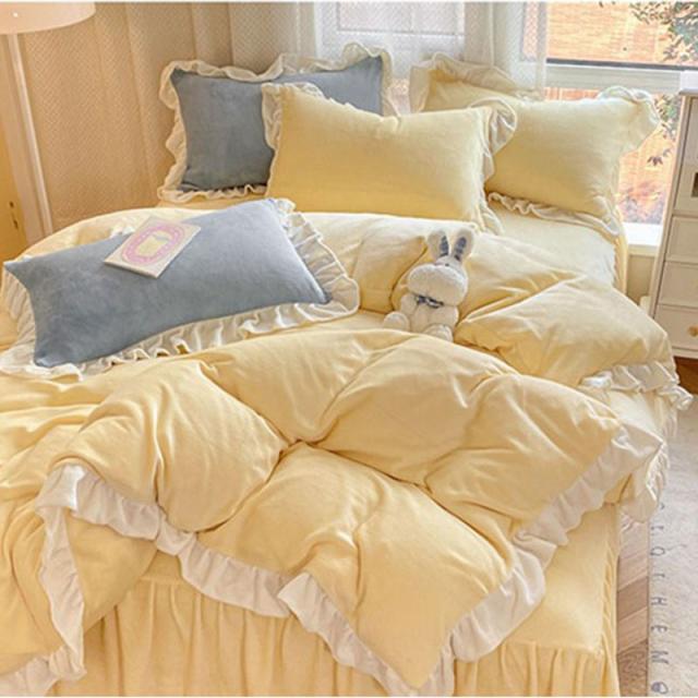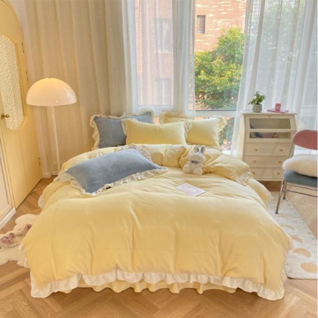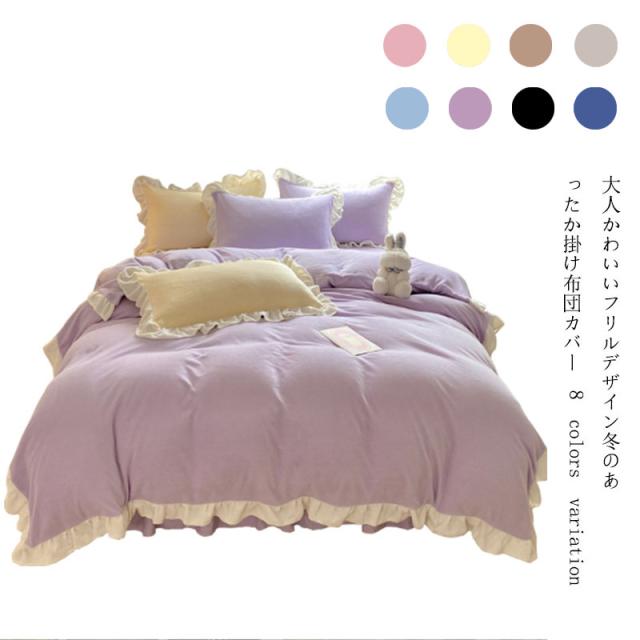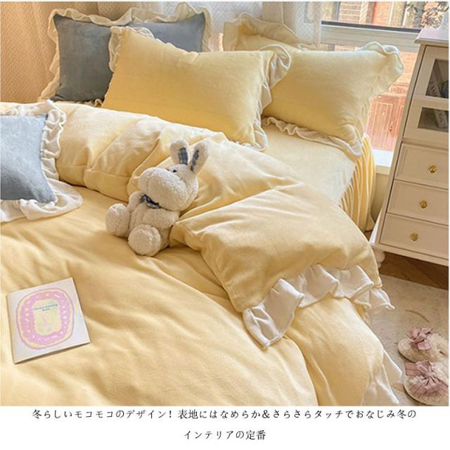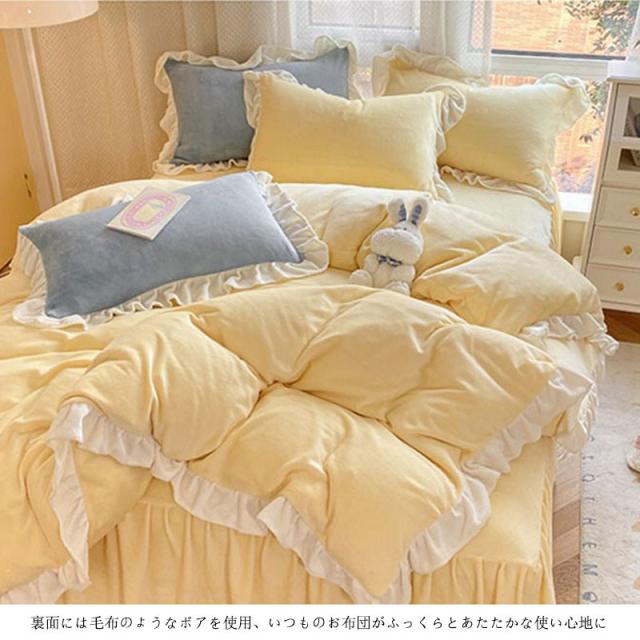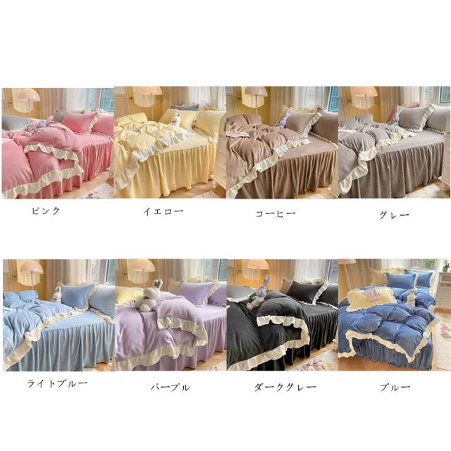 3点セット 4点セット 布団カバー フリル 掛け布団カバー カバー セミダブル ダブル フランネル フリル付き 敷き布団 ベッド 裏起毛 おしゃれ ゴージャス 布団カバー 掛け布団カバー 枕カバー