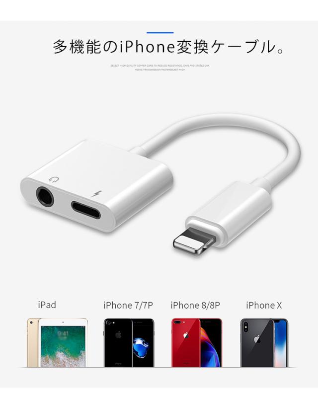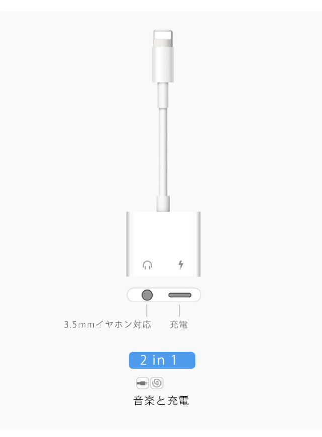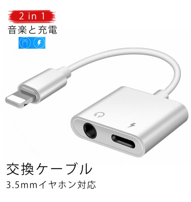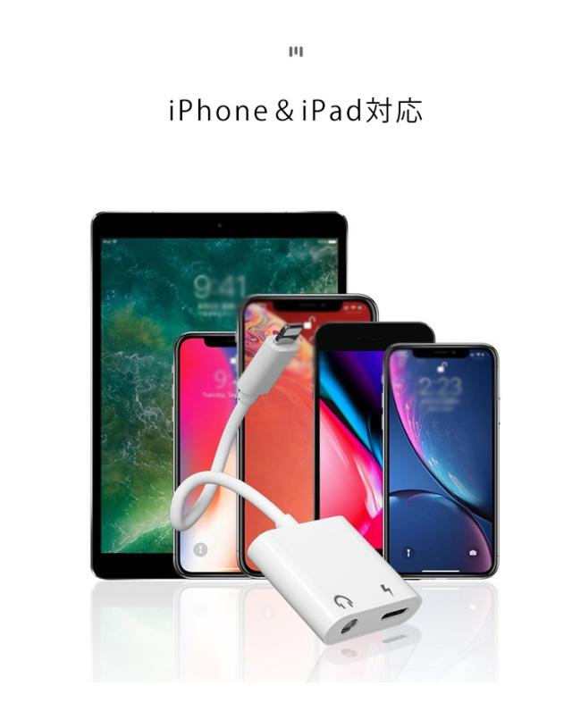 2in1 iPhone 変換ケーブル iPad iPhone 3.5mm イヤホン 変換ケーブル ライトニング アダプター コネクター 同時充電 Lighting ケーブル 充電 音楽再生 iPhone11 iPhone11 Pro Max iPhoneXS iPhone XR iPhone X iOS対応 送料無料