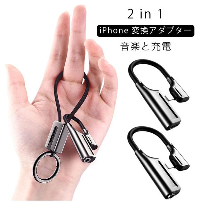 2in1 変換ケーブル iPhone イヤホン 変換アダプター 変換アダプタ Lighting変換 ライトニング イヤホンジャック ヘッドホン変換 充電 音楽 通話 イヤホン アイフォン コネクタ 送料無料