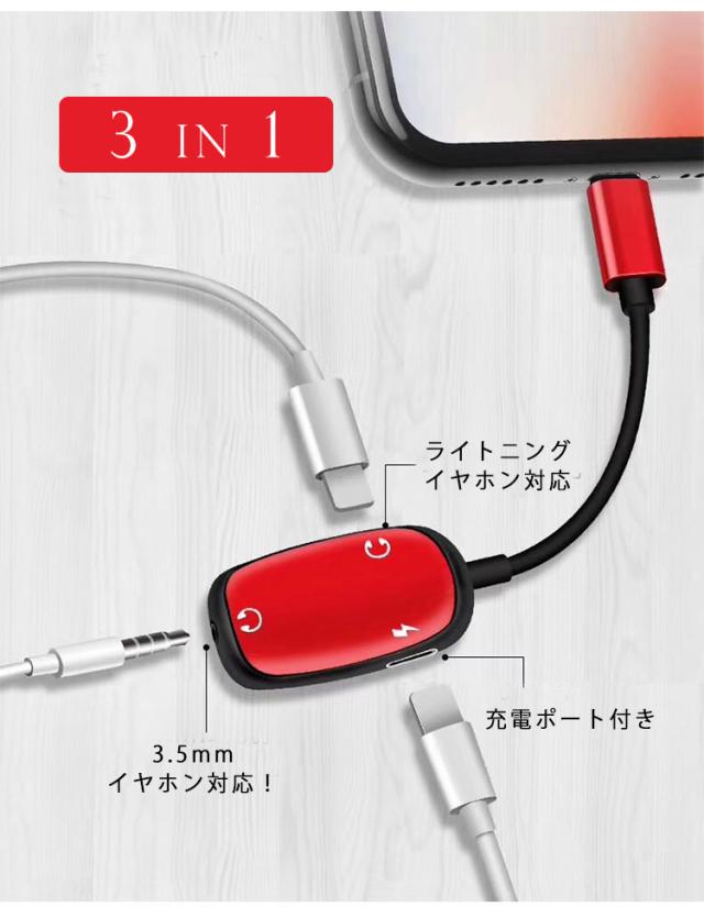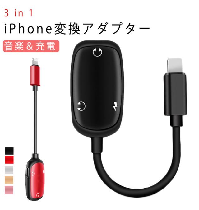 3in1 iPhone イヤホン 変換アダプター iPhone 変換ケーブル 変換アダプタ Lighting変換 ライトニング イヤホンジャック ヘッドホン変換 充電 音楽 通話 イヤホン アイフォン コネクタ 送料無料