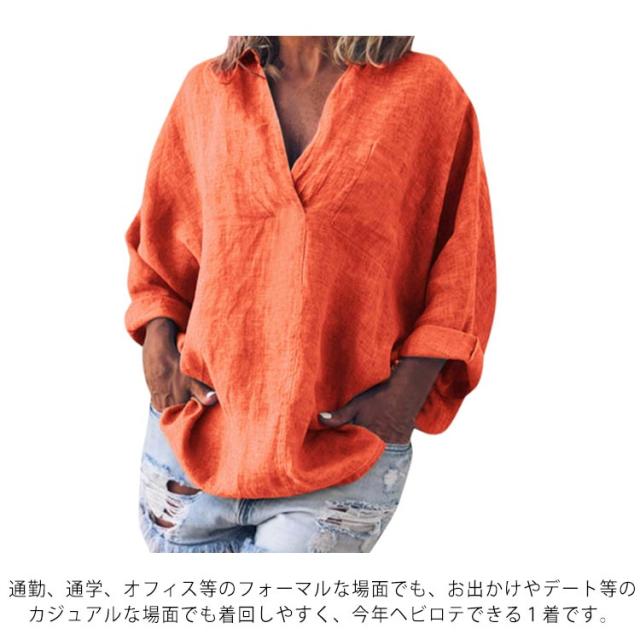 | 爽やかな、レディース長袖綿麻シャツブラウスです。 程よい深さのVネックがきれいめな印象を、こだわりのタックのデザインが、オシャレな大人女性を感じさせてくれます。 サラッとした綿麻素材で着回しやすいです。 ボトムスには、デニムやスキニー、ショートパンツ、ミニスカート等と相性抜群です。 通勤、通学、オフィス等のフォーマルな場面でも、お出かけやデート等のカジュアルな場面でも着回しやすく、今年ヘビロテできる1着です。 | |