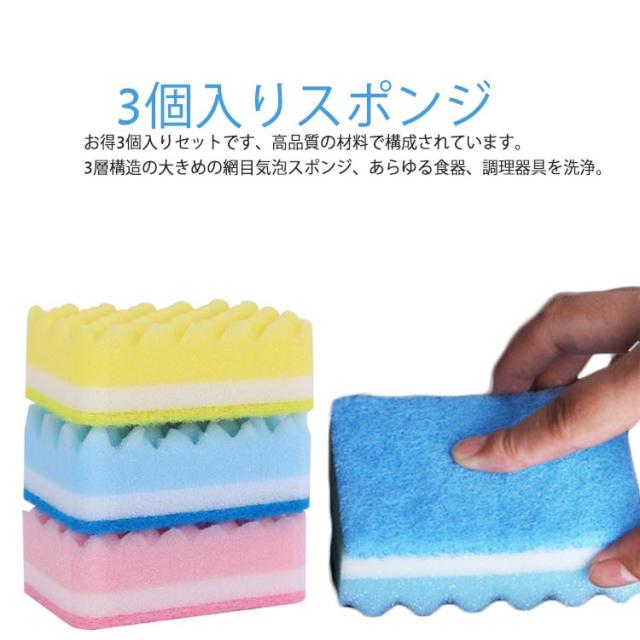 台所用スポンジ キッチン 掃除用品 水アカ お風呂 キッチン用品 耐薬品 キッチンスポンジ 台所 送料無料 風呂掃除 風呂 スポンジ 掃除 水切れ クリーナー(キッチン用) 耐油 耐水 食器 大きめ 水垢 3個セット 水あか 水垢取り イエロー ブルー