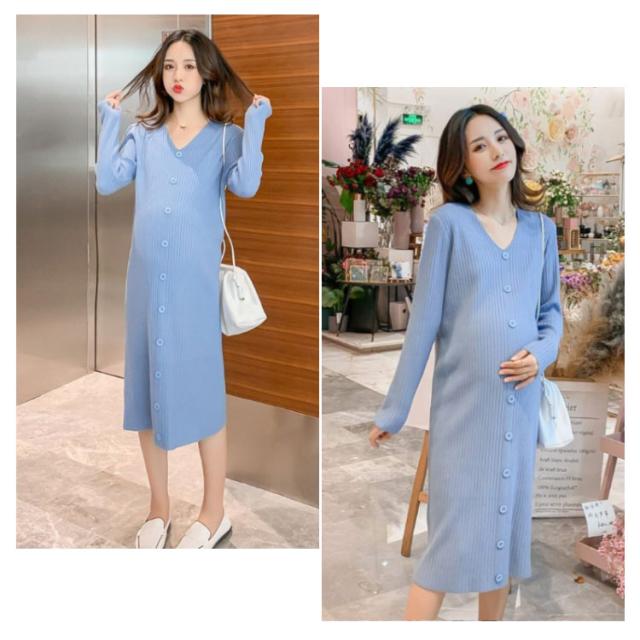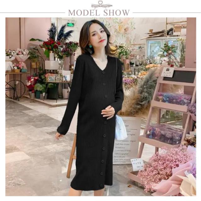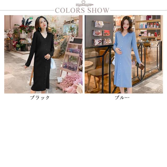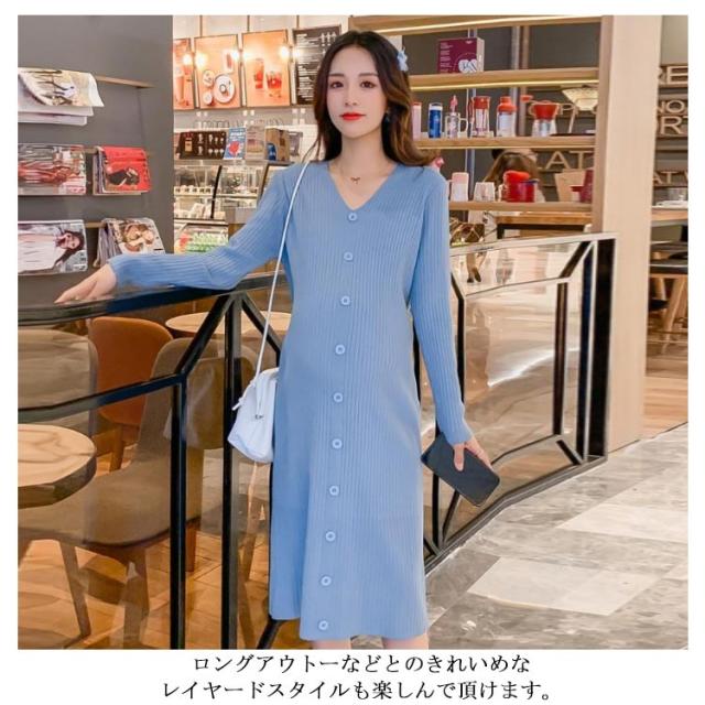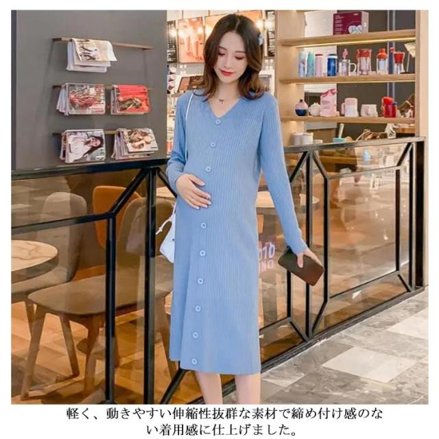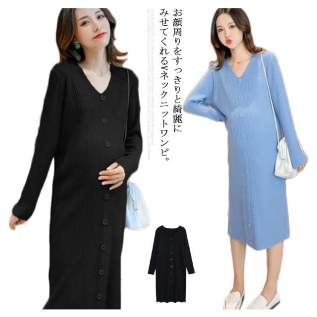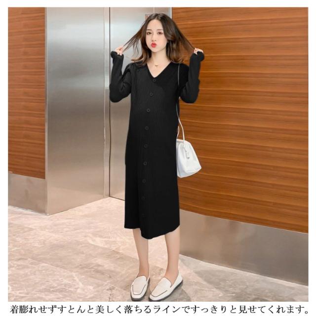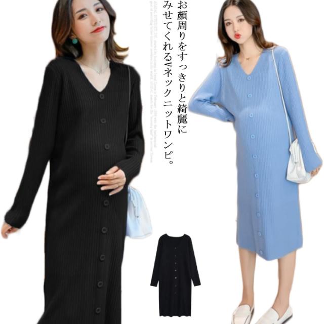 Vネック ワンピース ゆったり 体型カバー 妊婦服 ロング ニットワンピ 伸縮性 レイヤード 無地 産前産後 ゆったり 長袖 暖かい ストレッチ 普段着 秋冬 リブ 着痩せ お出かけ マタニティウェア マタニティ