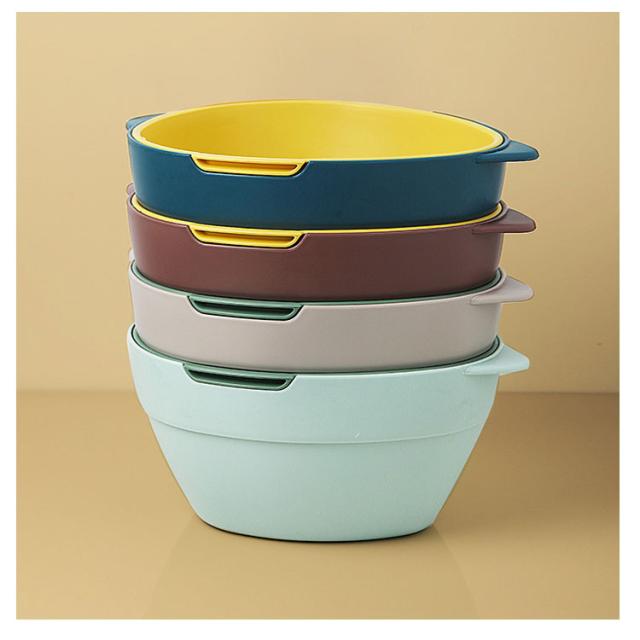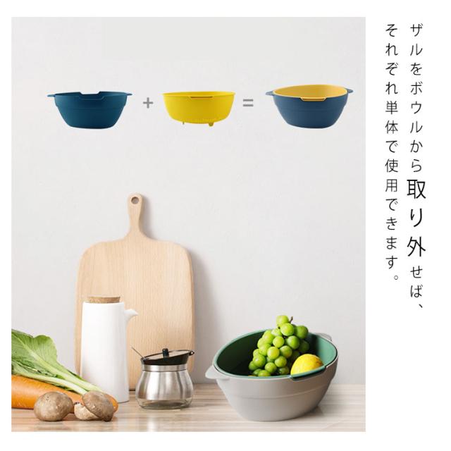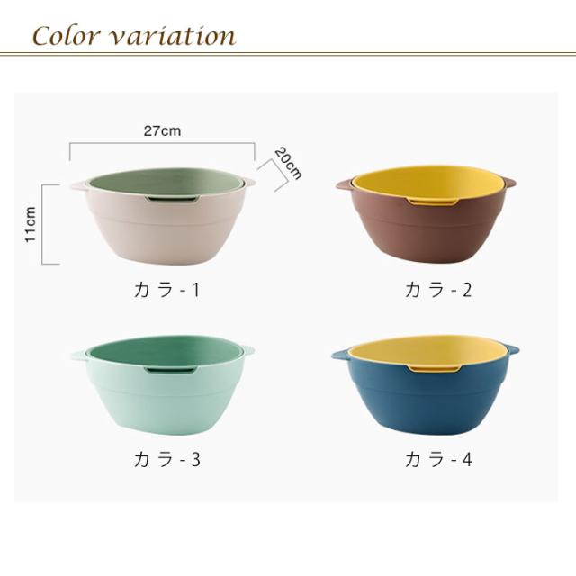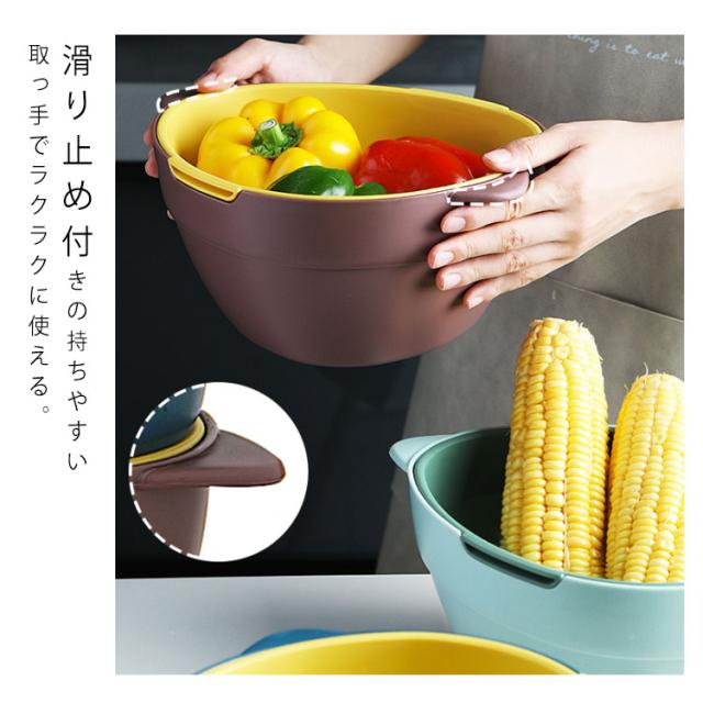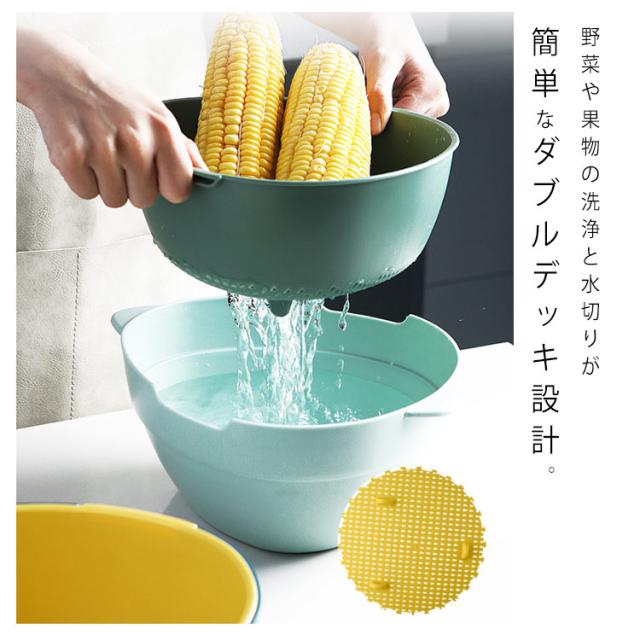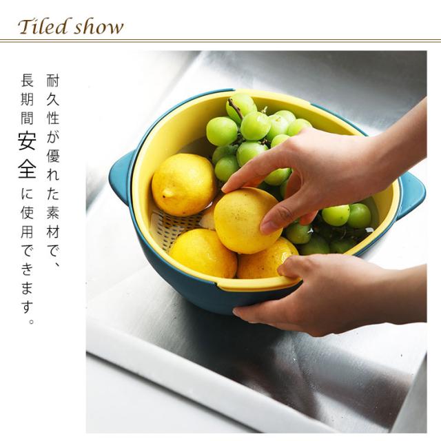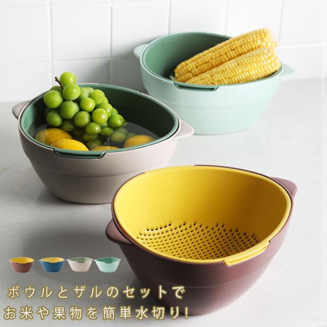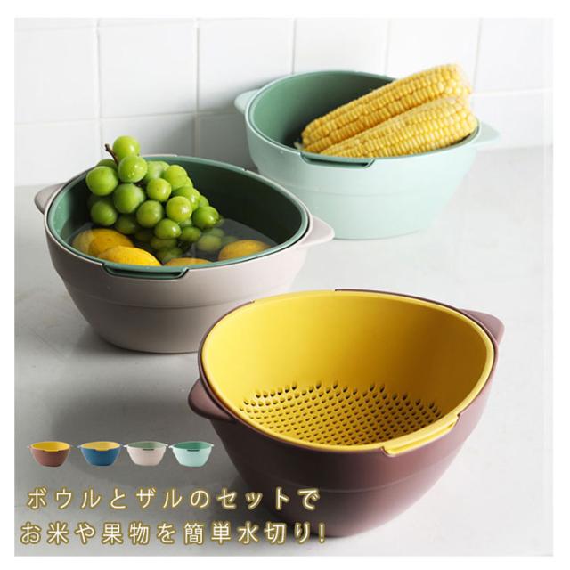 2点セット ザルボウル 洗い桶 フルーツプレート 水切りかご 水切りセット 二重層 キッチン用品 コンパクト 洗浄容器 お洒落 キッチン収納 収納用品 送料無料
