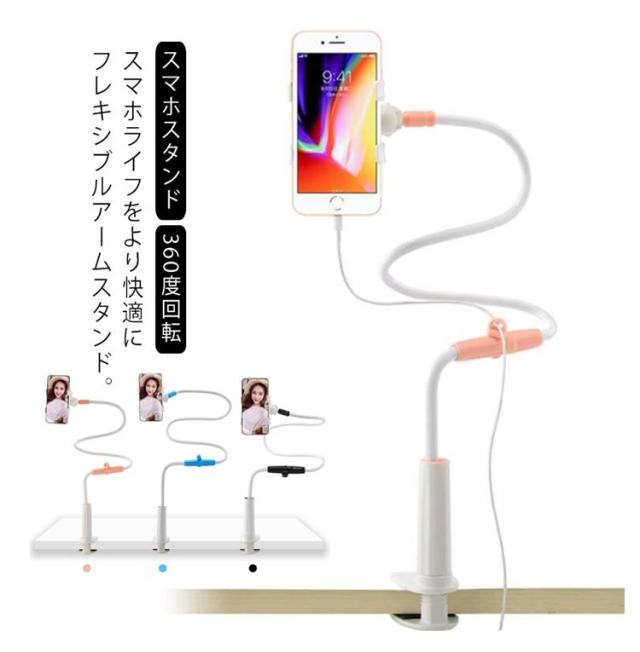 スマホ スタンド フレキシブルアームスタンド クランプ式 アーム 卓上 スタンド スマホスタンド アームスタンド スマートフォン スタンド スマホホルダー 360度回転 テーブル ベット デスク に固定 調整 寝ながら 調整しやすい iPhone android対応 送料無料